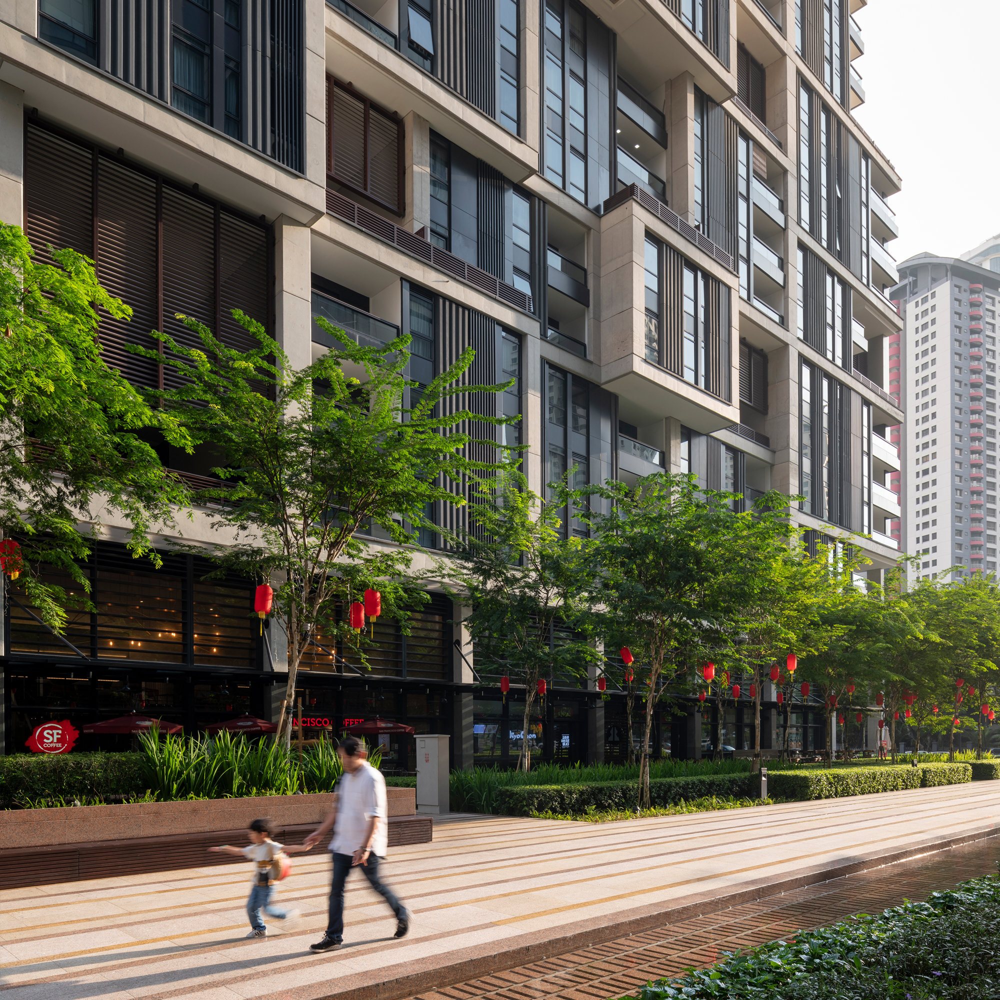 Arcoris Mont’ Kiara combines places to live and work with a range of social spaces. The major 1.5-million-square-foot scheme breaks with the established model of development in the area, creating an innovative mixed-use destination in a predominantly residential district of the city. The boundaries of the site are highly permeable and the buildings extend laterally to appear lower than neighbouring towers – their focus is drawn inwards towards a green central plaza, lined with cafes, shops and landscaped terraces.