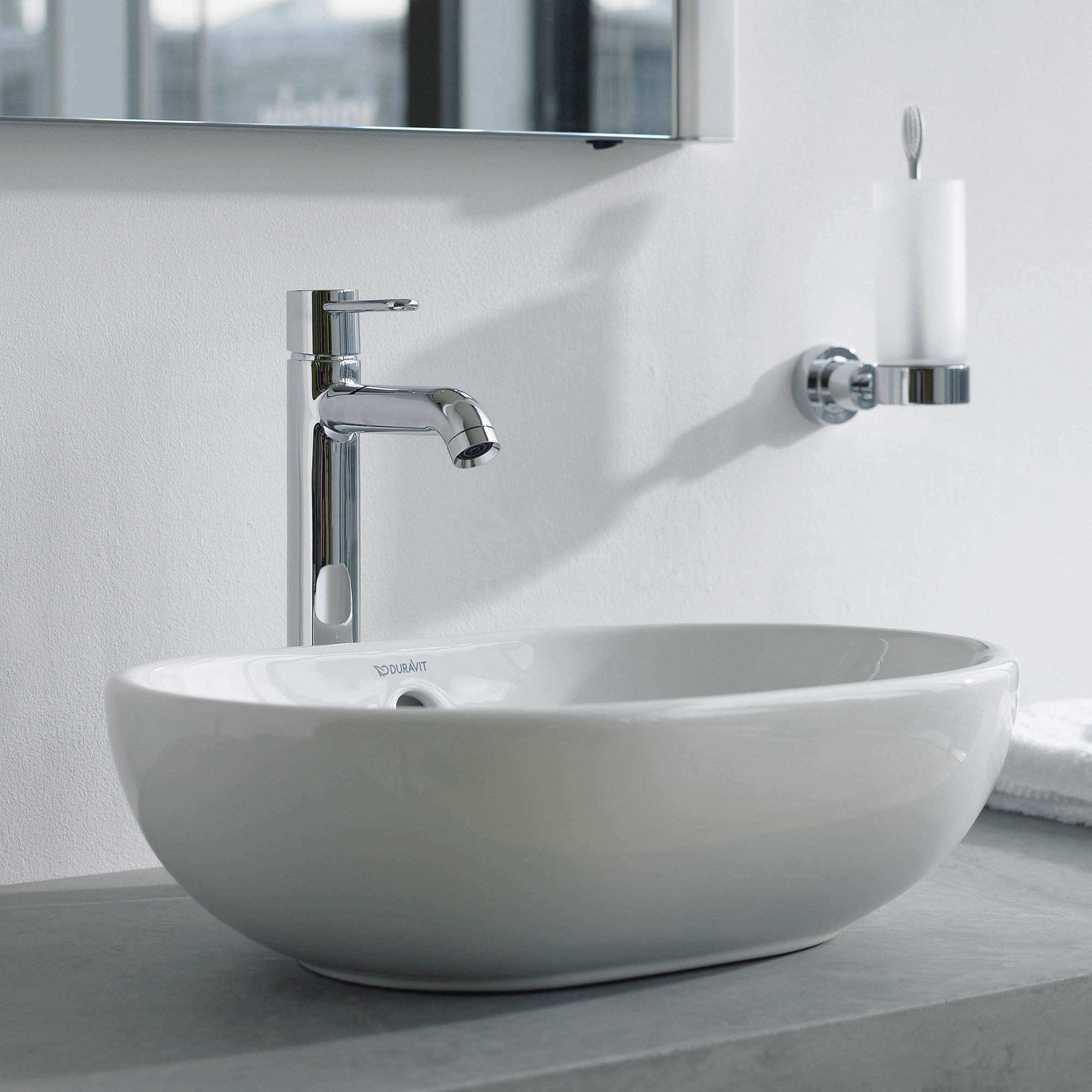 There are more than thirty elements in the Duravit/Hoesch series, ranging from baths, shower units and basins to towel rails and liquid soap dispensers. Each of these elements is generated by a consistent geometry based on two adjacent circles. All the sanitary elements are made from high-quality porcelain, and the showers and baths are made from vacuum-formed acrylic. The bath has an optional whirlpool system and is available in free-standing and built-in versions or with a wall attachment. Both the basins and baths are generous in capacity but have a light appearance because of the extremely fine profile of their rims, which also aids easy access to the bathtub. The shower unit has a transparent surround and optional side-jets for hydromassage. The range also includes one and two-person steam baths. The storage units - wall-mounted mirrored cabinets and larger free-standing cupboards for storing towels and bathrobes - follow the geometry of the sanitary elements. The curved doors of the cabinets have a wide opening angle, allowing especially easy access to their contents.