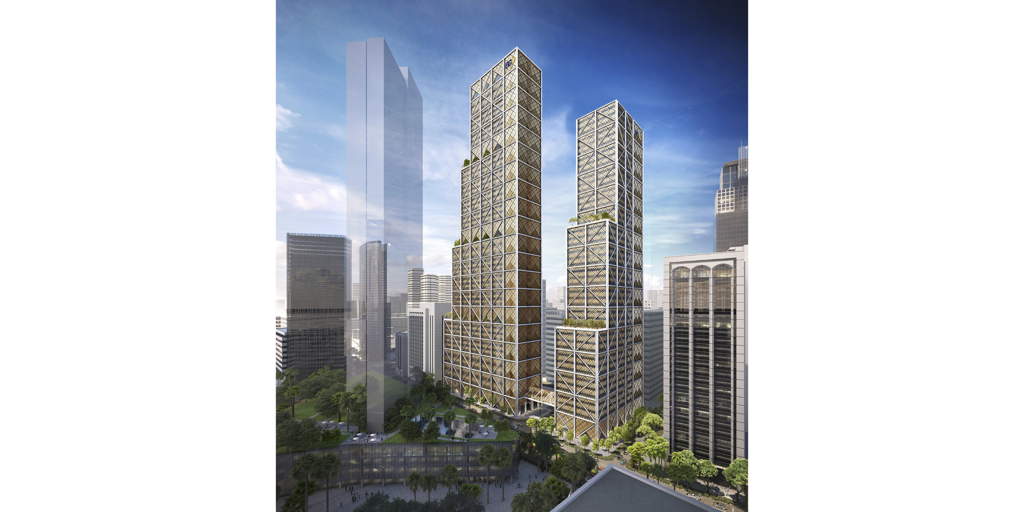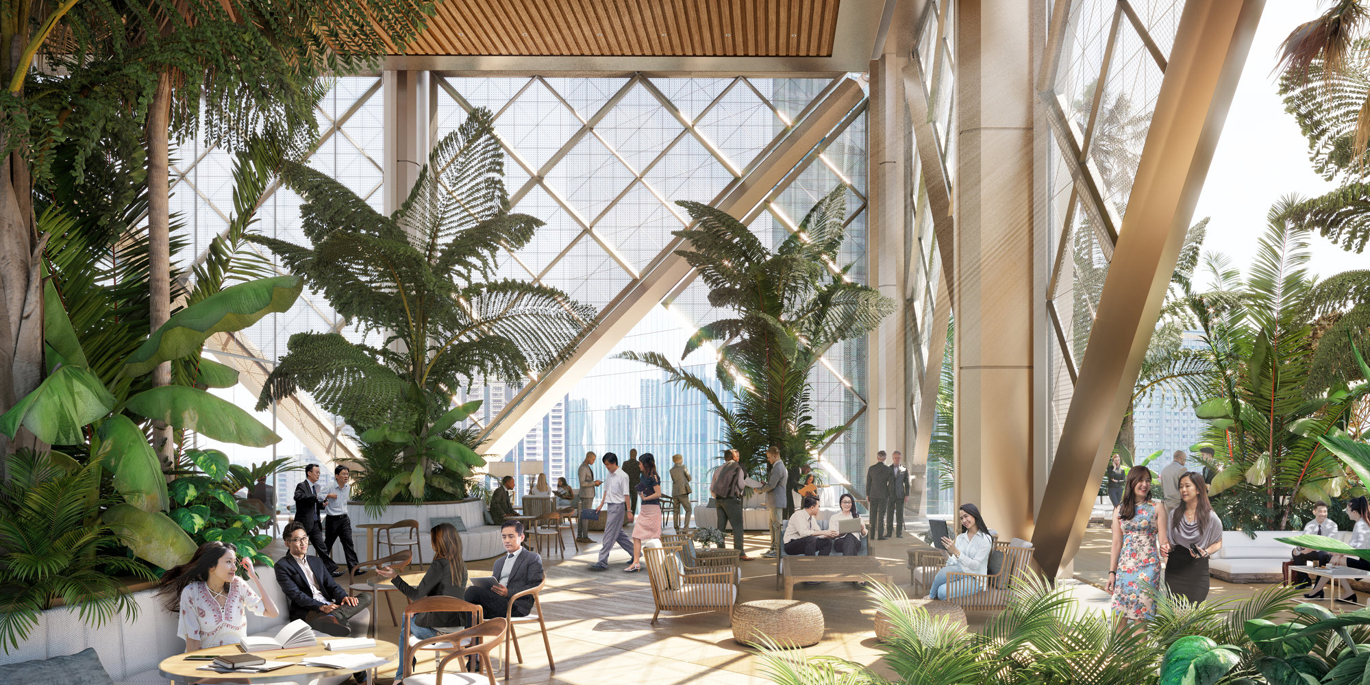 The project makes a positive contribution to Manila by transforming five separate urban plots into a singular integrated campus. Two high-rise towers touch the ground lightly and frame a new triple volume public space that is sheltered from heavy rainfall and direct sun exposure. The open ground plane incorporates lush planting and an array of artworks, to enhance the public realm and improve the quality of life in the city.