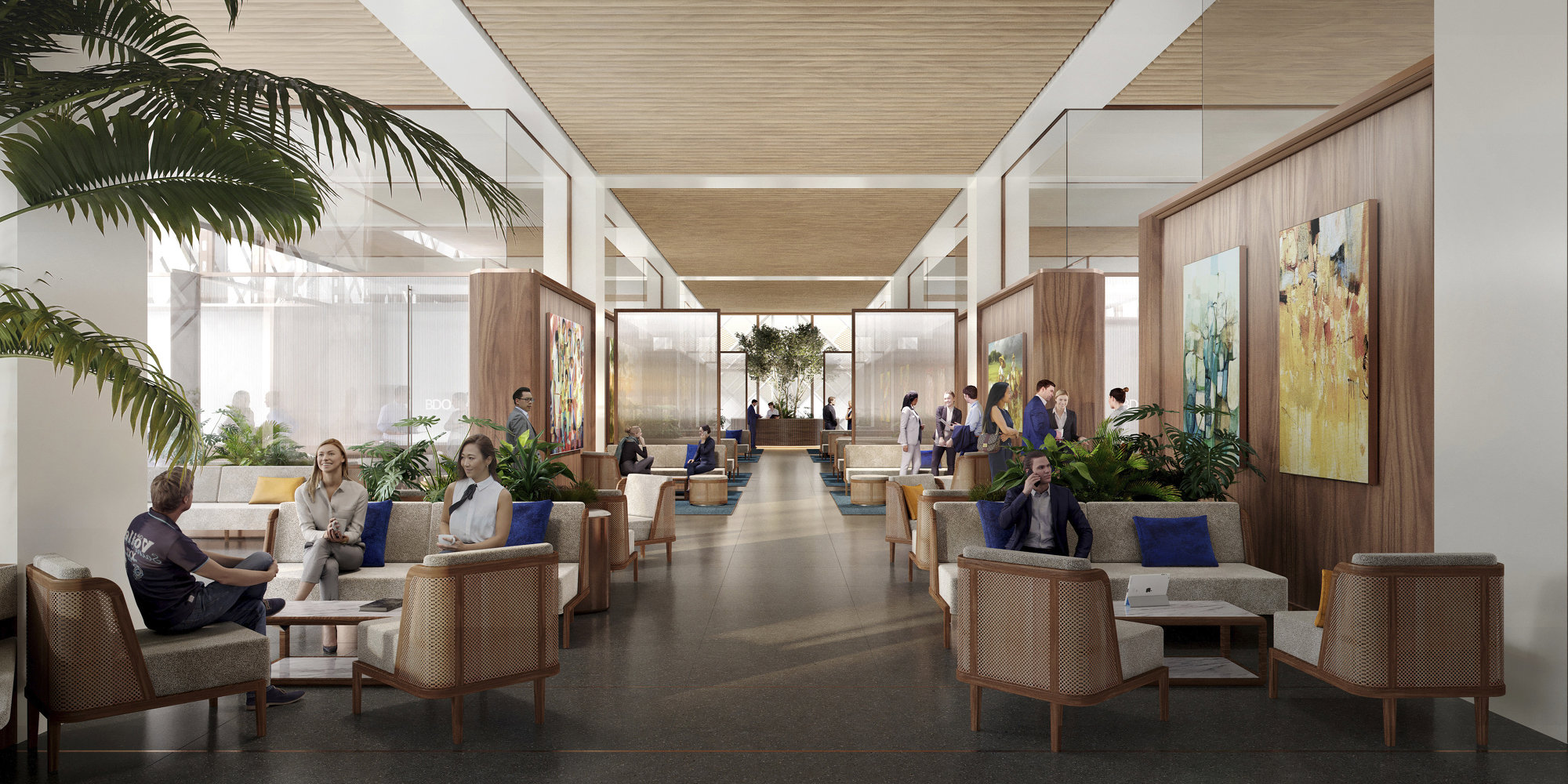 From the ground plane, staff and visitors can access an elevated reception that connects them to the office tower and key podium spaces, including the business centre, public museum and canteen. The 3,000-metre-square meeting and event space acts as one of the primary areas for the bank to engage with its broad customer base. A new public museum hosts temporary exhibitions and showcases the bank’s permanent collection of artworks.
