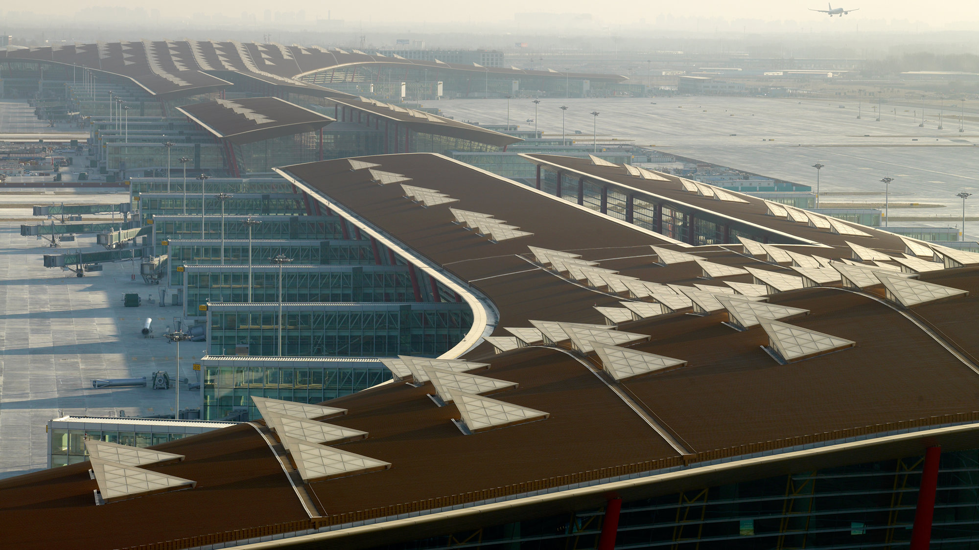 Completed as the gateway to the city for the twenty-ninth Olympiad in 2008, Beijing's international terminal is the world's largest and most advanced airport building − not only technologically, but also in terms of passenger experience, operational efficiency and sustainability. Designed to be welcoming and uplifting, it is also a symbol of place, its soaring aerodynamic roof and dragon-like form celebrating the thrill and poetry of flight and evoking traditional Chinese colours and symbols.