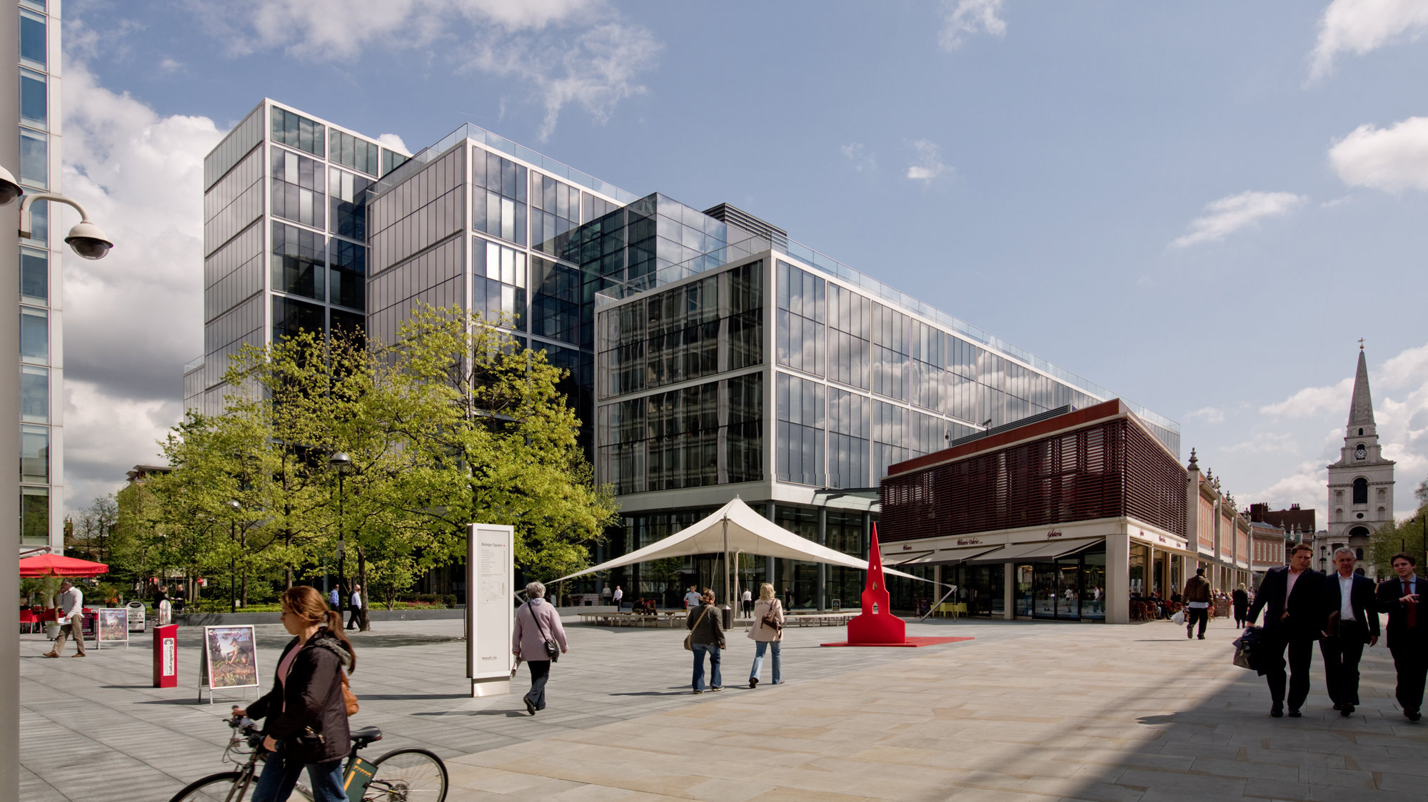 Bishops Square completes the regeneration of the historically important Spitalfields neighbourhood, which bridges the City and the East End, and provides a new public space for London - larger than the Piazza at Covent Garden. Comprising a new covered market area, 3,700 square metres of retail space, 72,000 square metres of offices, along with apartments, community facilities, cafés and restaurants, the scheme has transformed a former wholesale fruit and vegetable market into an eclectic, bustling urban quarter.
