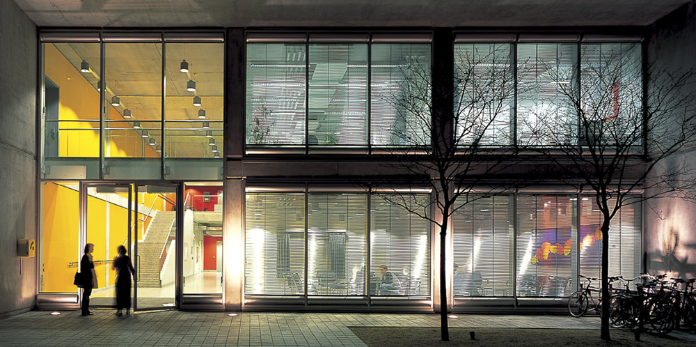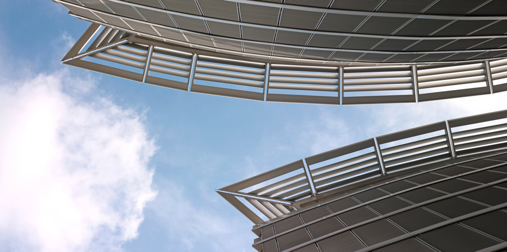 Its striking façade is defined by a structural sandstone frame, with a series of large-scale bronze fins that shade the floor-to-ceiling glazing. The fins give the building a visual hierarchy and rhythm as they vary in scale, pitch and density across each façade according to orientation and solar exposure, while being an integral part of the building’s natural ventilation system.