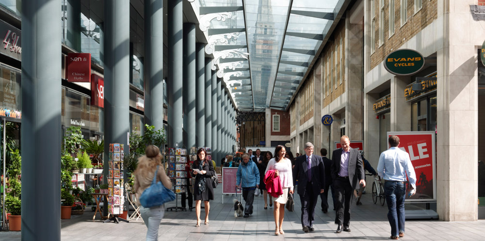 Occupying a full city block, the 3.2-acre site comprises two buildings united by bridges that span over a pedestrian arcade that reinstates Watling Street, an ancient Roman road that ran through the site. Bloomberg Arcade is now a key route for people moving around the City, with restaurants and cafes at ground level, set back behind an undulating façade under a covered colonnade. Three public plazas, located at each end of the arcade and in front of the building’s entrance, provide new civic spaces in the heart of the Square Mile.