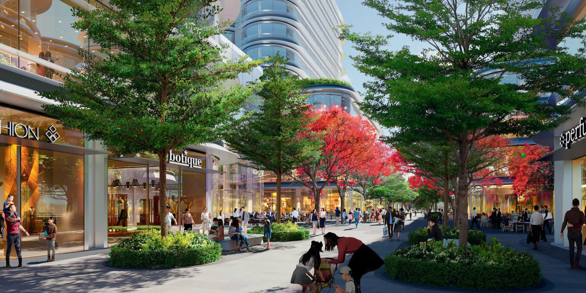 The mixed-use development, on the south side of the site, responds to the urban scale and character of its surroundings. The development includes retail and cultural facilities for the local community, as well as offices, a hotel and conference centre. A central axis connects the city’s public park with the tower and intercepts with two new plazas. The vibrant central plaza will host a variety of events and is surrounded by shops and restaurants on all sides. The development is oriented towards the public park and has green landscaping woven throughout.