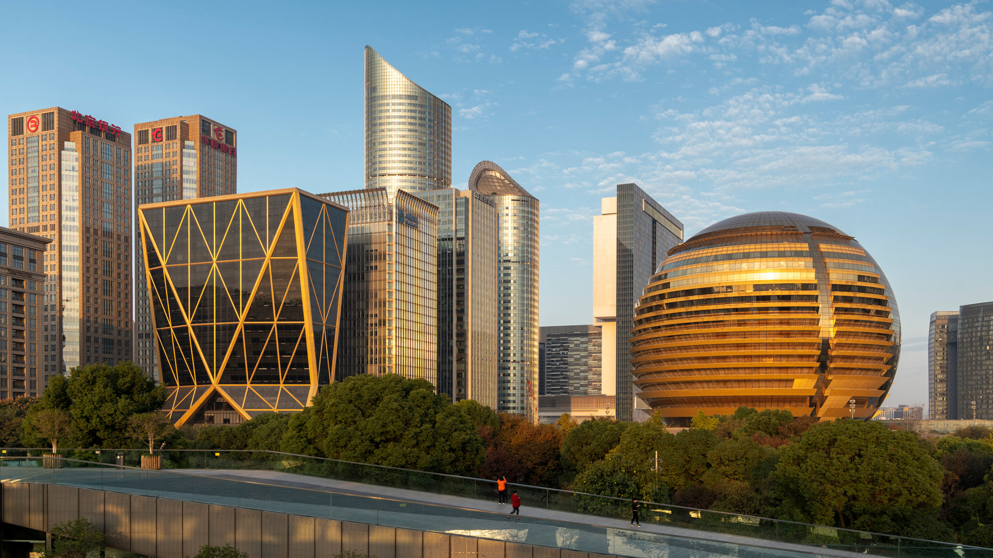The headquarters tower for CITIC Bank has a prominent location in Hangzhou, on a main axis through a new central business district being constructed next to the QianJiangRiver. The site is also adjacent to one of the city’s most recognisable landmarks – the distinctive golden sphere of the Intercontinental Hotel. The challenge for its design therefore, has been to create a new building that harmonises with its surroundings, yet has its own integrity and presence and provides an iconic headquarters for the Bank. Resonating with elements of traditional Chinese culture, the tower’s design draws inspiration from the shape of the ancient ‘dou’ or ‘ding’ vessel, a traditional symbol of wealth, dignity and stability.