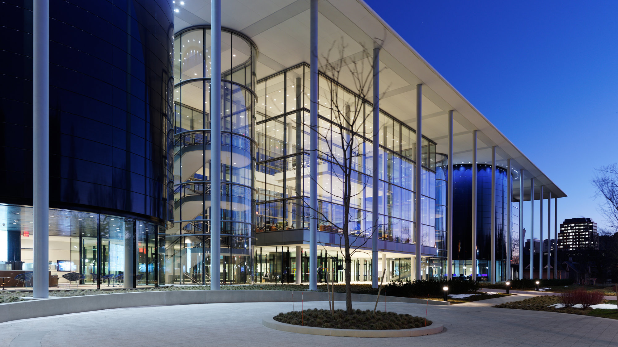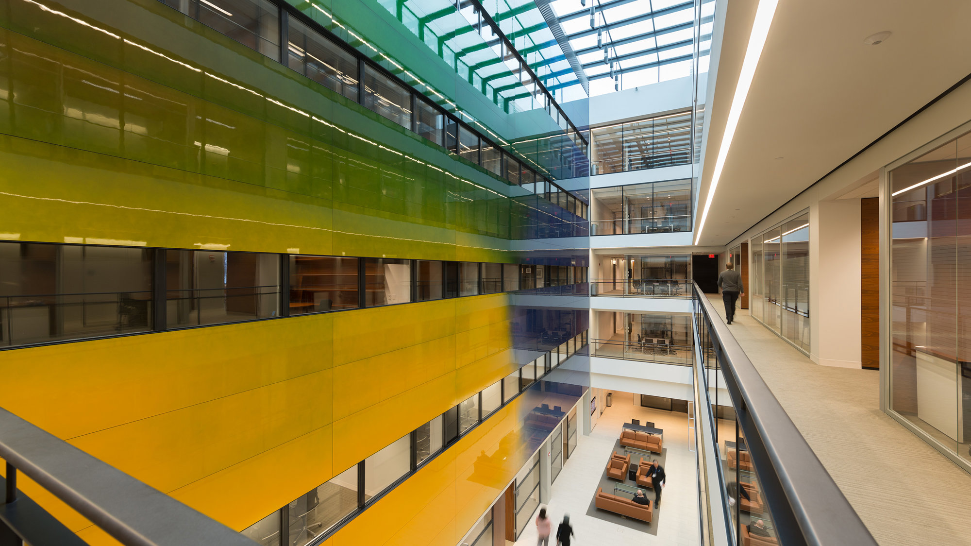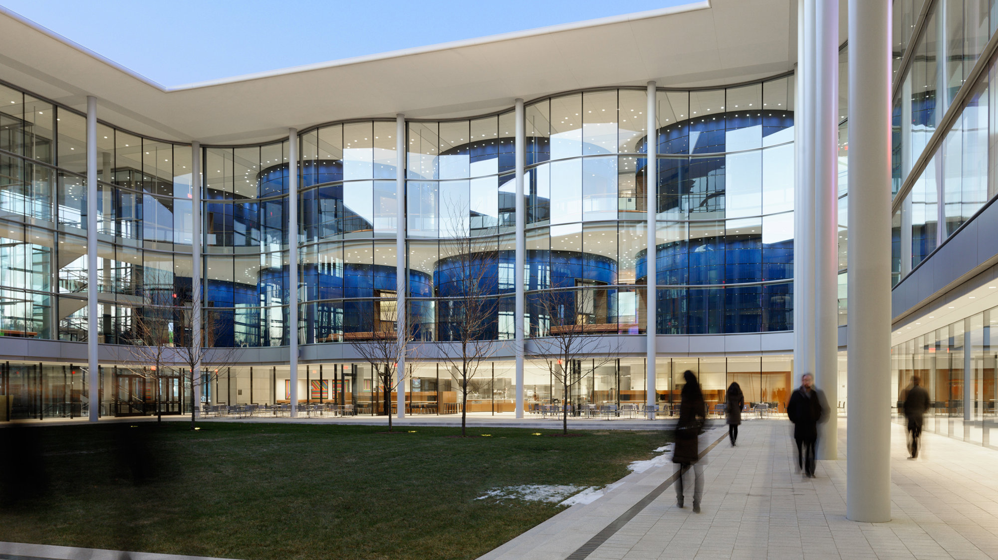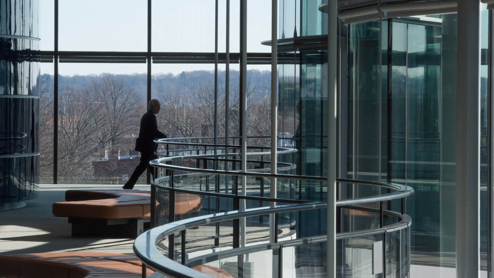Inspired by Yale School of Management’s reinvention of business school education and pioneering integrated curriculum, the Edward P. Evans Hall combines world-class teaching facilities with inspirational social spaces. The project unites Yale’s faculty departments in a single location for the first time and brings a high level of transparency to the traditionally enclosed college courtyard, creating a green heart for the campus community, which is visible throughout the school. Embracing the wider campus, the transparent façade opens the building up to Whitney Avenue, making visible the staircases on either side of the entrance and showcasing the school’s activities.