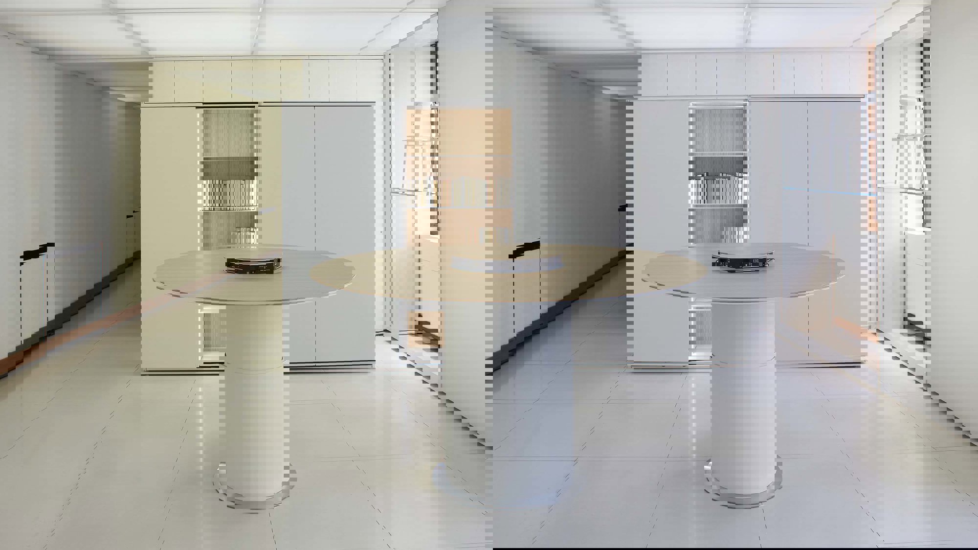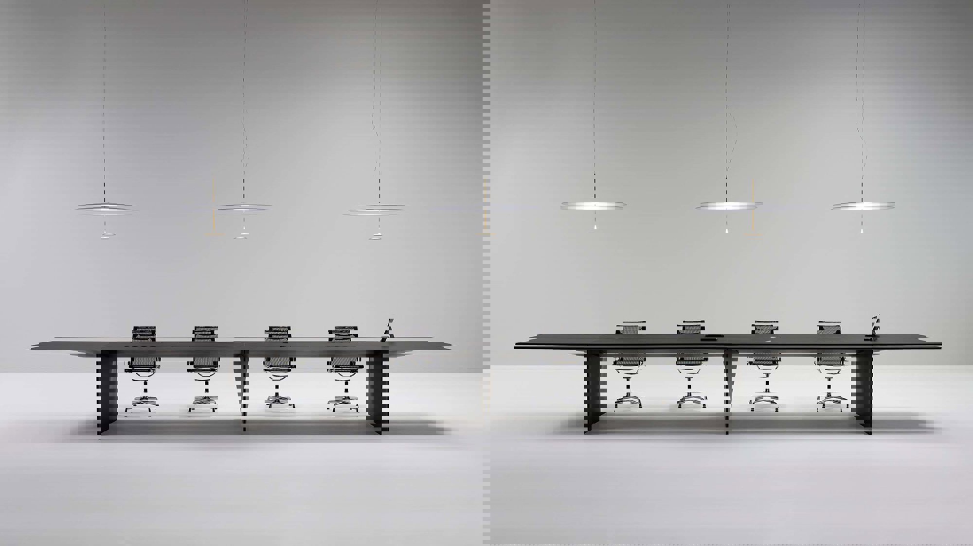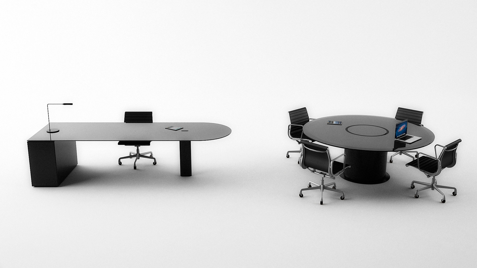 The table cantilevers from a solid base, formed by a sliding toolbox containing carved timber trays and storage. Utilising a sliding mechanism originally developed for jewellery shop displays, the trays appear to float when extended. Above the tool box, the surface of the desk can be retracted to reveal a power source. The table tapers towards the edges to appear slim in profile, while ensuring strength and stability. A single leg extends like a column to provide support with minimal visual impact, and allows a group of people to sit comfortably around the end of the table. While the initial prototype is produced in white powder coated aluminium with a white glass top, the table can be specified in a range of materials to suit both a domestic and office setting, including ceramic, glass, aluminium and wood.