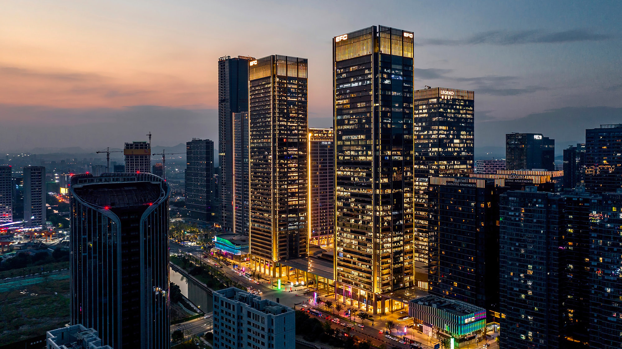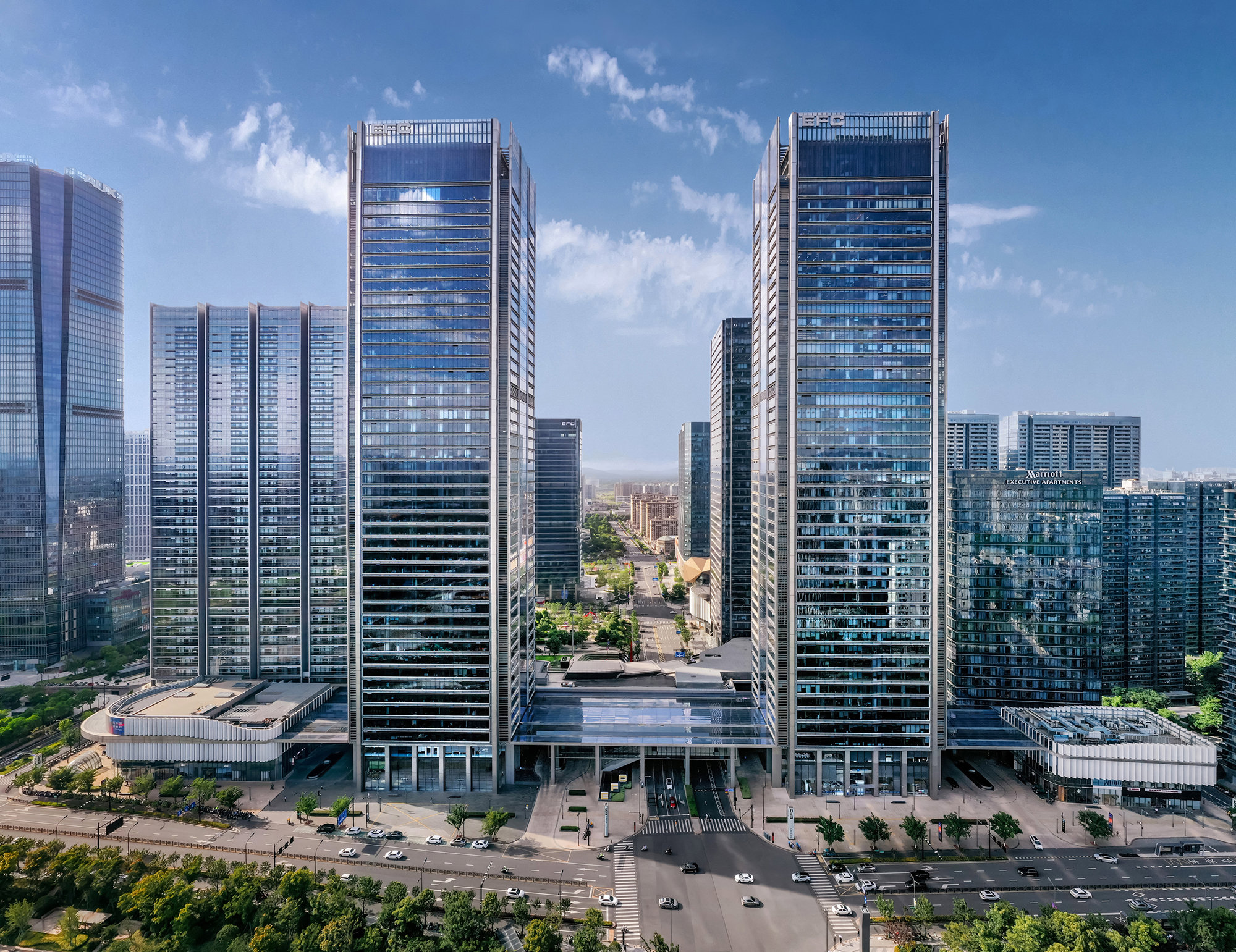 The Euro America Financial City is a new office-led development located in the Central Business District of the Future Sci-Tech City in Hangzhou. The distinctive twin towers form a new gateway to the district, situated close to the Chuangjing Road Station on the Metro Line 5 connecting the EFC to the rest of Hangzhou. To the south of the site is the Xixi National Wetland Park Extension, expanding the rich network of landscaped canals into the heart of the district. The unique combination of offices, hotels, serviced apartments, retail, leisure and residences creates a diverse experience for everyone.