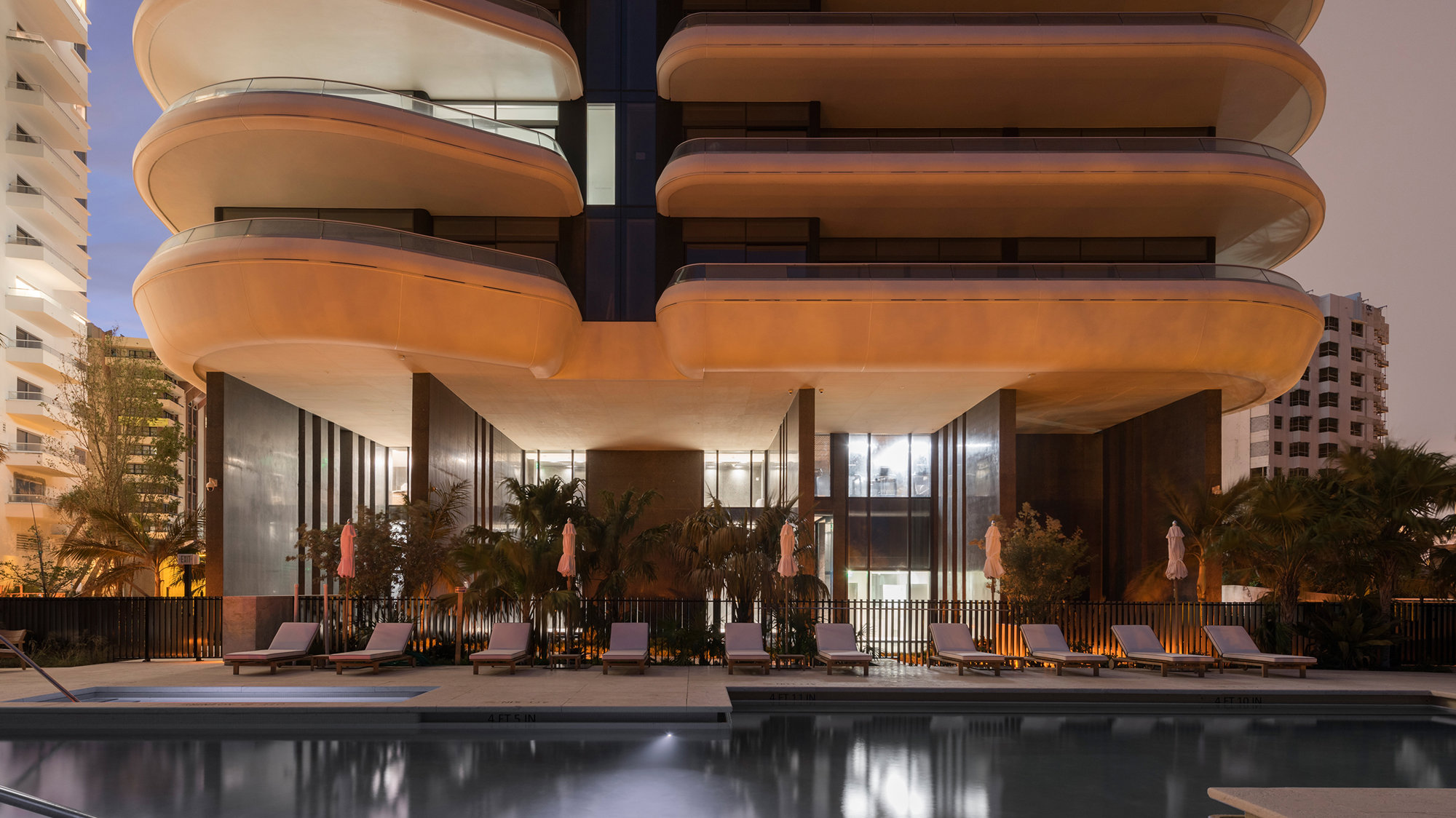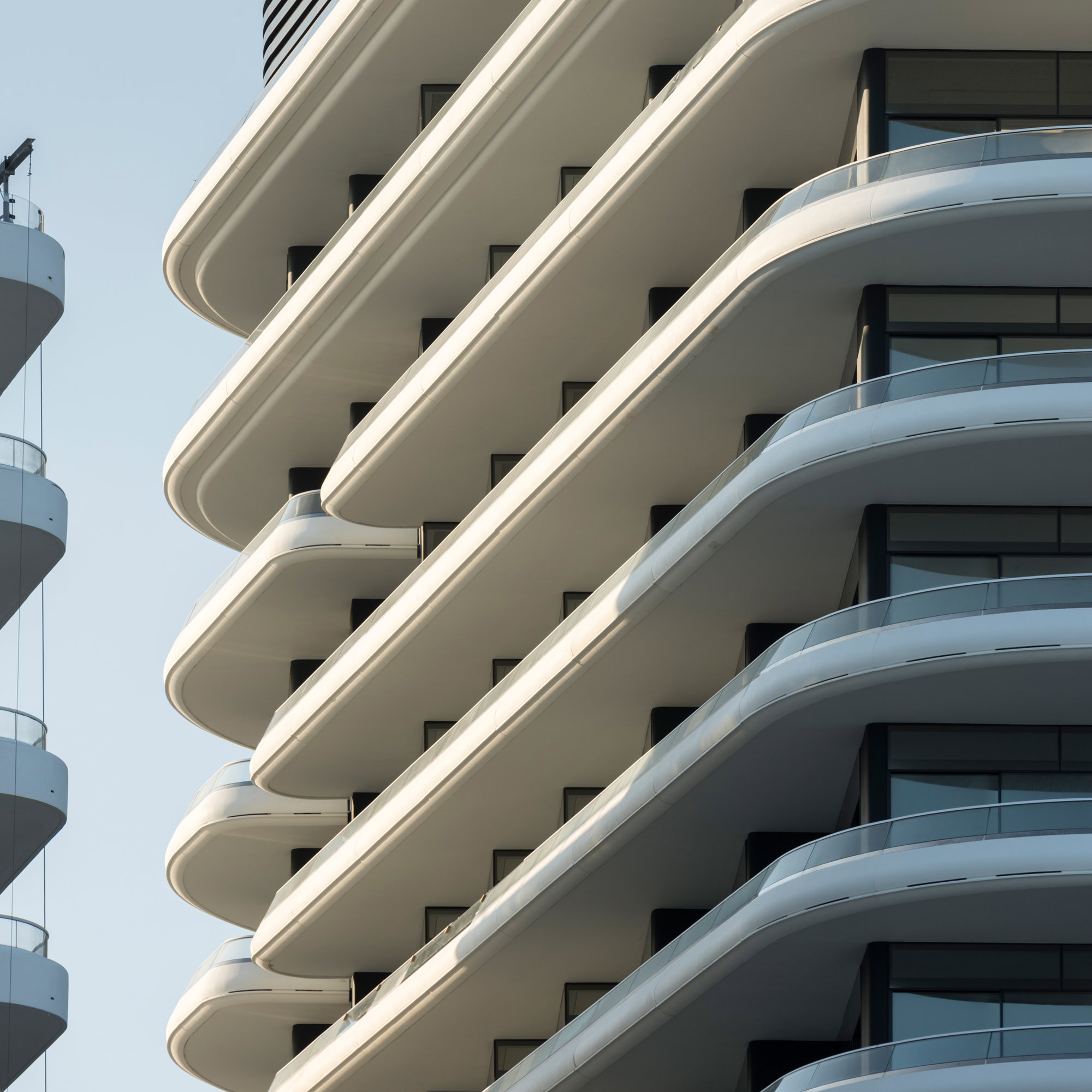 Faena House is the latest addition to the stretch of luxury apartments, hotels and resorts along Miami Beach in Florida. Bounded by the Atlantic Ocean to the east and Collins Avenue to the west, the site is north of Miami’s celebrated Art Deco quarter. The sleek, modern lines of the 17-storey apartment block resonate with this local style, while the building’s efficient passive form is designed to reduce the need for mechanical cooling during the hot summer months.