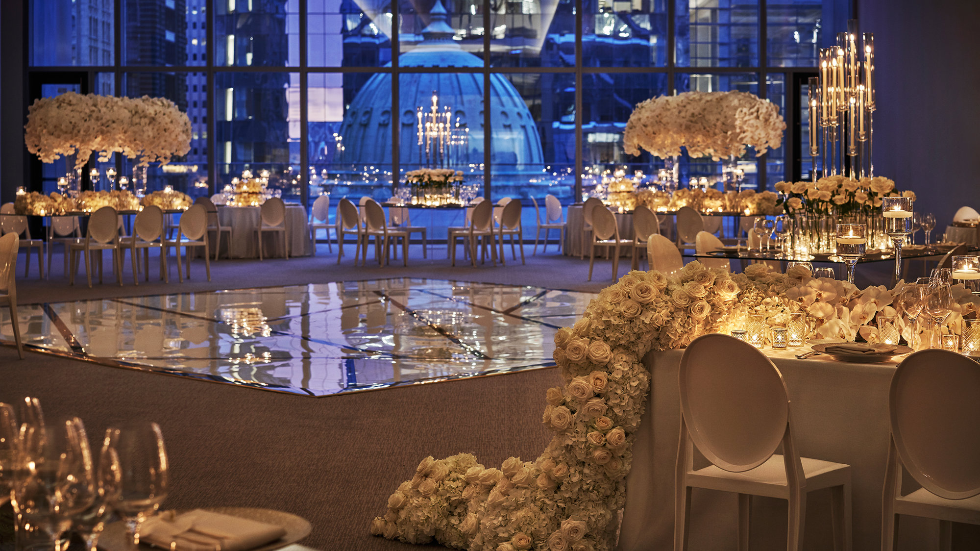 The ground floor elevator lobby, located to the right of the main entrance, features exquisite displays by acclaimed floral designer Jeff Leatham. The glass express elevators rise up and out of the podium along the northern façade, revealing stunning views of the city, looking onto Logan Square and carrying guests and visitors up to the hotel reception on level 60.
