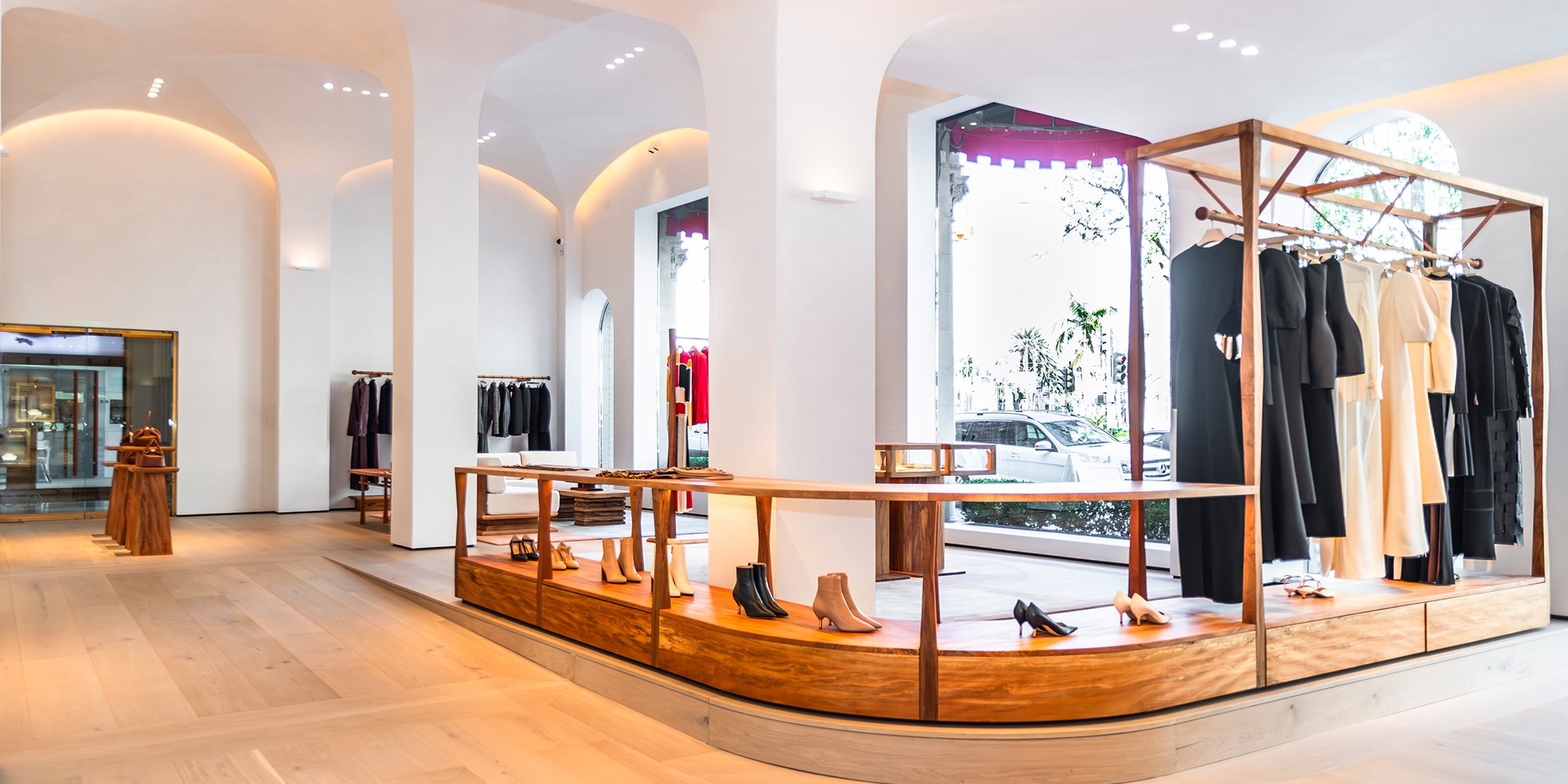 Gabriela Hearst’s Beverly Hills store is located along the street front of the famous Beverly Wilshire hotel, at the intersection of Wilshire Boulevard and Rodeo Drive. It is Foster + Partners’ second store for the New York-based label that has created a pioneering model for ecologically responsible clothing and accessories. Much like the London flagship, the design of its Beverly Hills store is underpinned by the brand’s sustainable ethos.