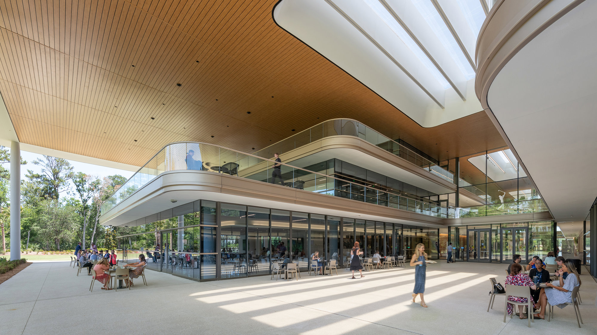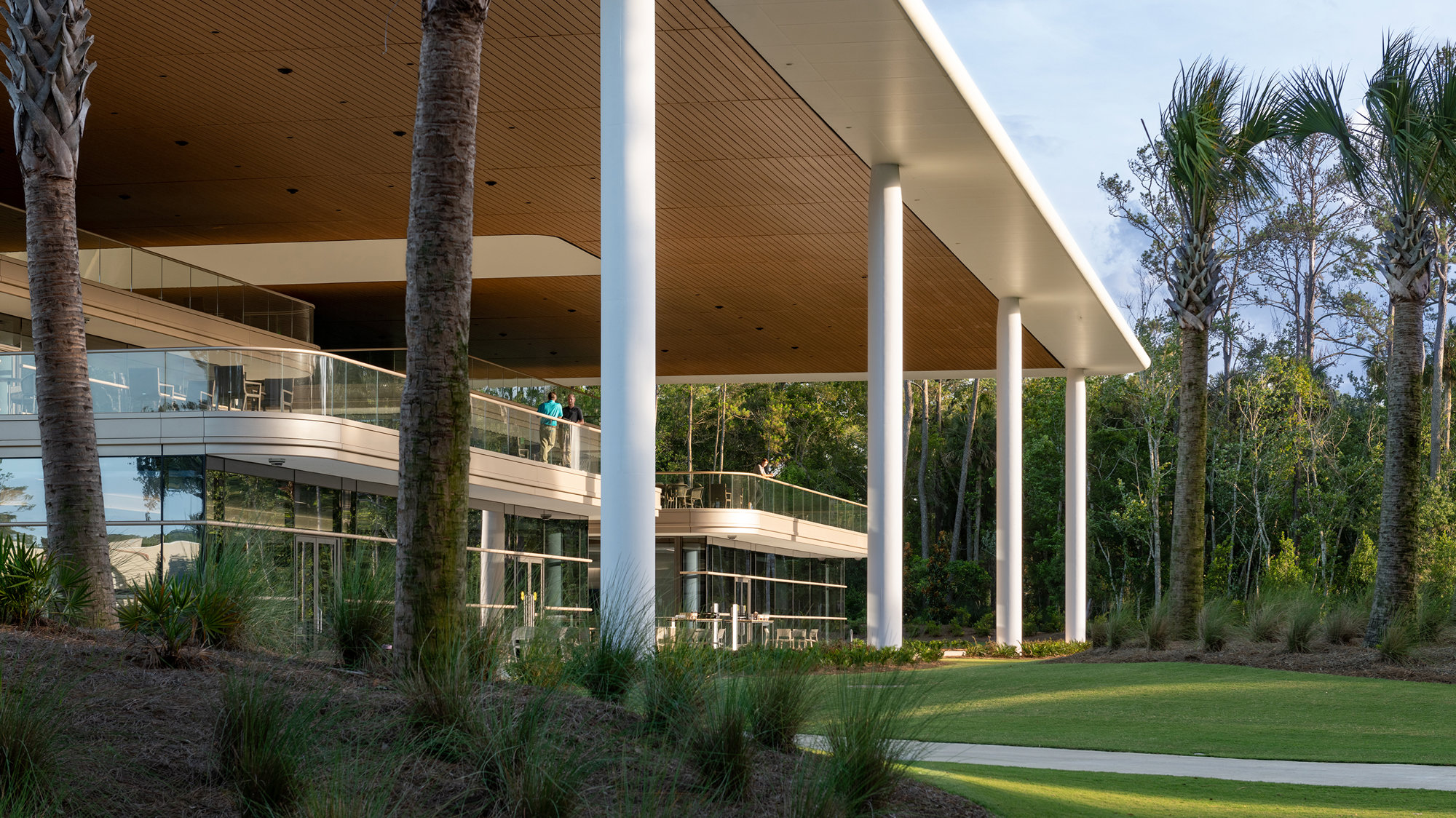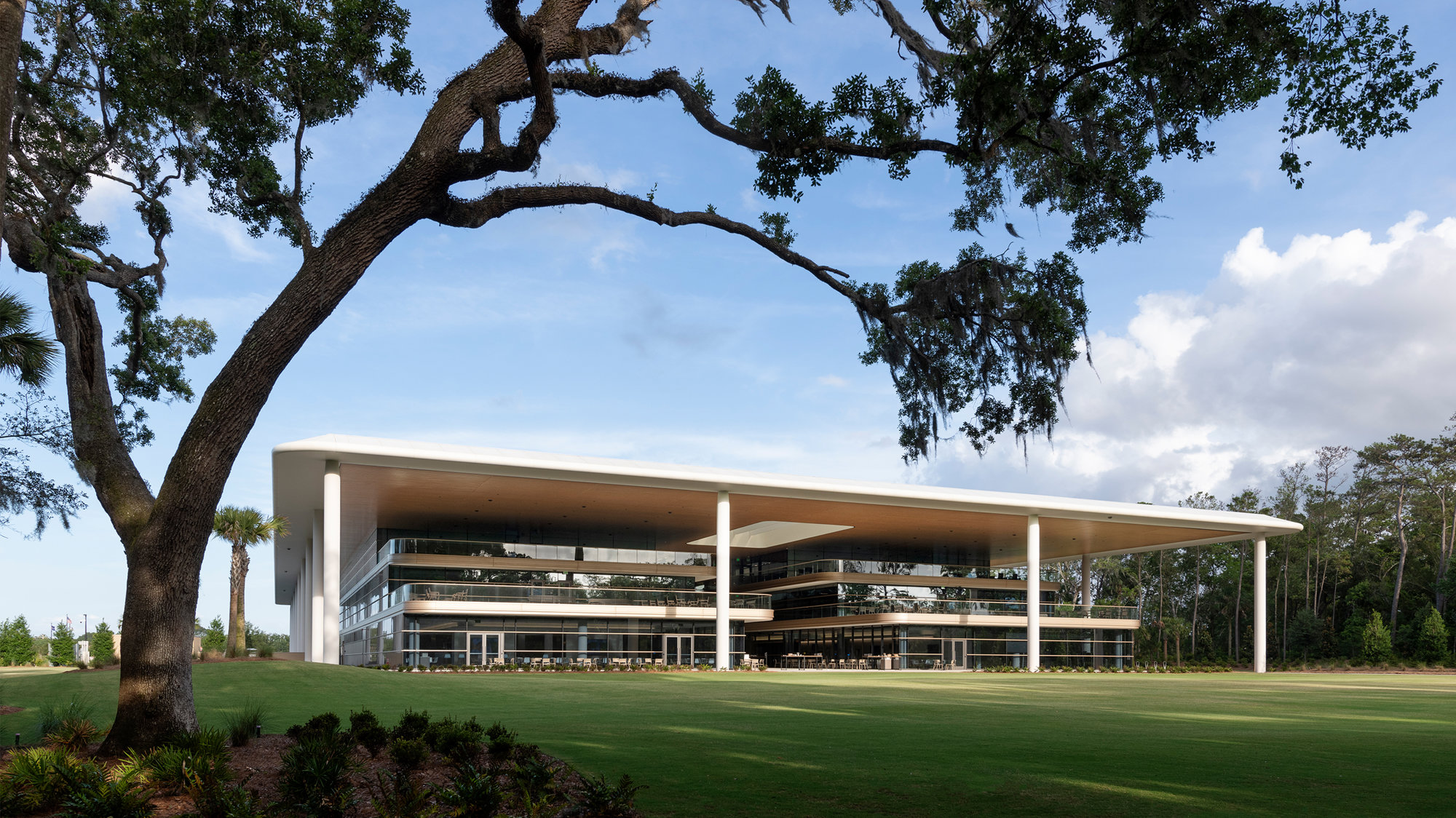 Located just south of the TPC Sawgrass - Stadium course, the 187,000 square-foot building is nestled within the verdant landscape and surrounded by water, preserving the existing greenery and wetland areas. The famous 17th hole at Sawgrass provides a point of axial orientation for the building, which is organised as a pair of parallel three-story bays flanking a collaborative atrium. The glazed façades and atrium fill the building with natural light, also allowing for axial views out to the surrounding landscape throughout.