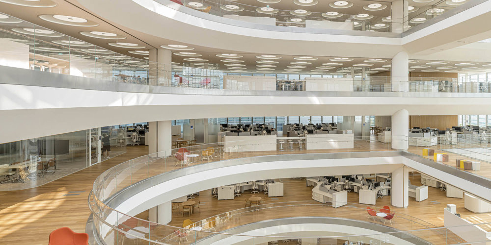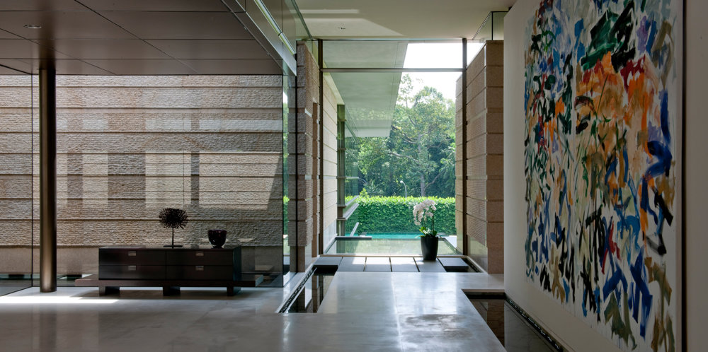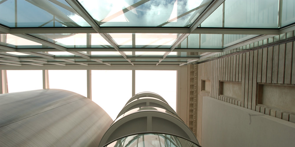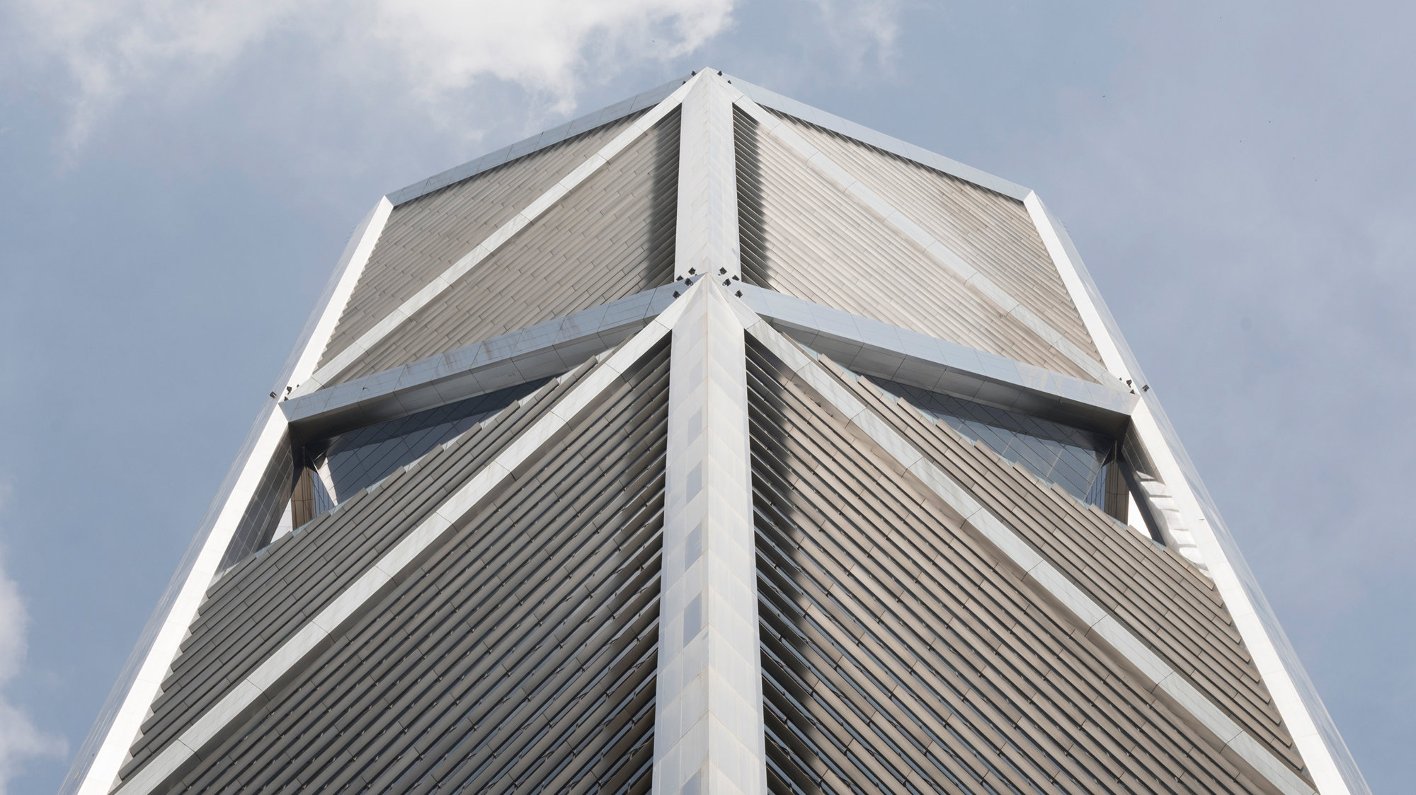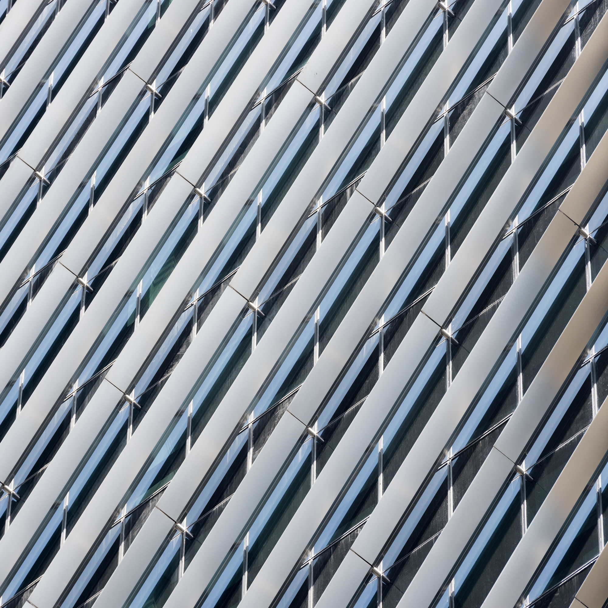 The stainless steel-clad structure, the geometry of the triangulated glass panels and the shading systems are all integrated to create a powerful, unified form. Following the profile of the structure, shading is provided by diagonal brise-soleil across each façade, oriented in response to the sun’s path to protect the interiors from solar heat gain, and glare is reduced by an opaque frit on the high-performance glazing. The structural solution also minimises the material required for construction and therefore the building’s embedded energy, contributing to the project’s target BCA Green Mark Gold Plus rating.