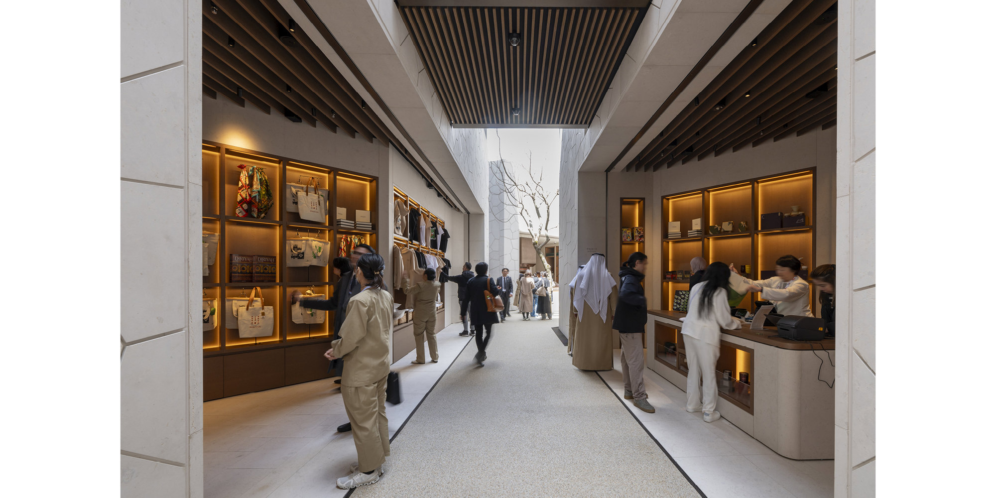 The Courtyard allows for moments of quiet reflection during the day and transforms into a venue for performances and events at night. From here, visitors are invited to explore a ‘village’ of meandering streets, with windows and doorways into a series of immersive spaces. The project honours the Saudi’s architectural heritage, evokes a sense of place, and provides visitors with a glimpse into the daily life and urban fabric of the Kingdom’s streets.