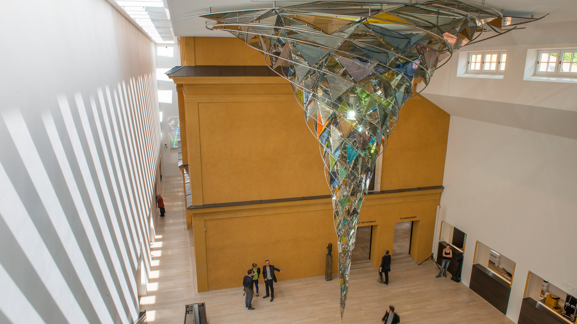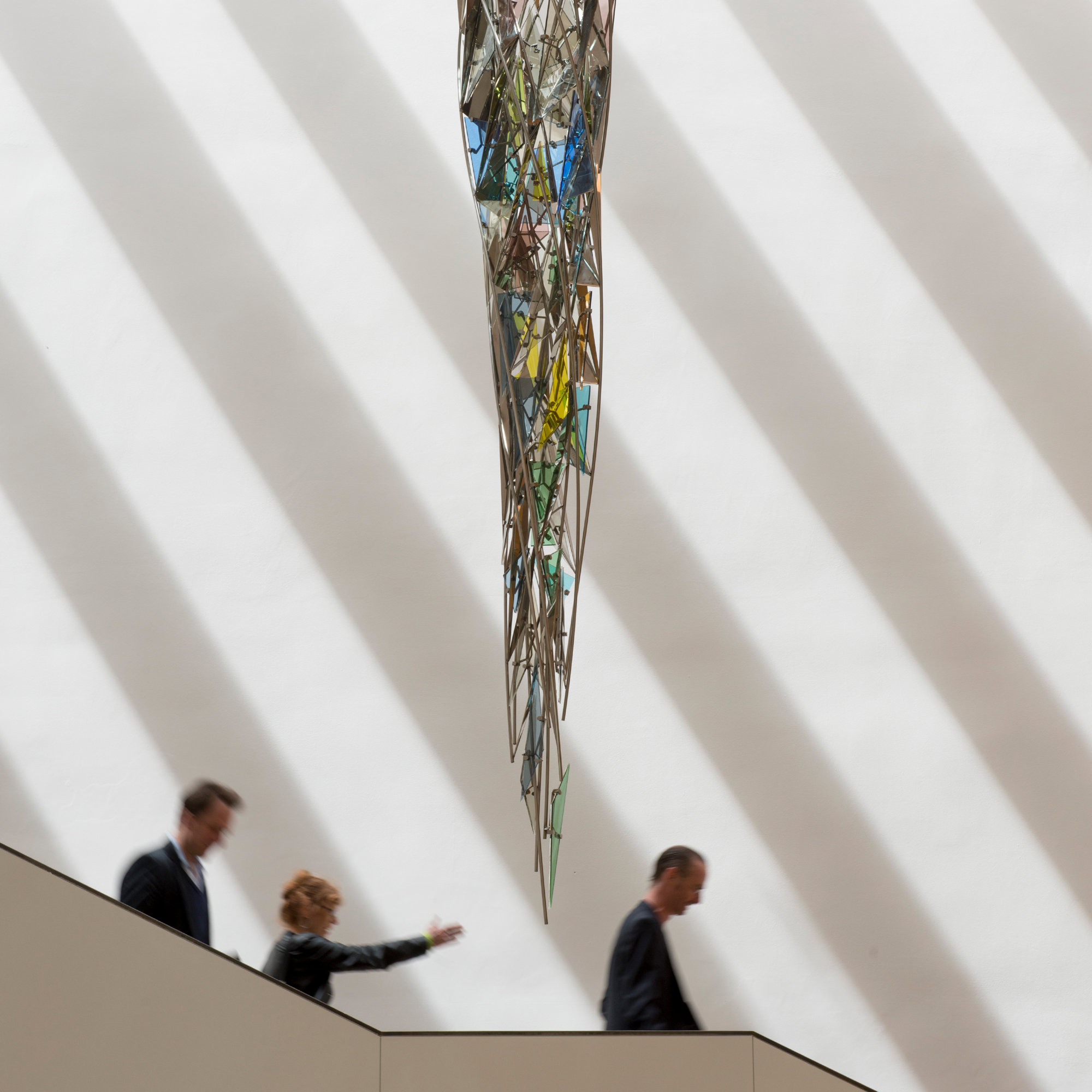 Circulation through the building has been completely redefined, beginning with a new entrance sequence via a piazza to the east of the museum, which has allowed the historic courtyard to be reinstated as a tranquil garden. A restaurant with an open-air terrace extends into the piazza, to enliven the surrounding area. The social heart of the building is the three-storey lobby, from where visitors access the temporary exhibition space on the ground floor and the upper-level galleries. Clearly articulating the old within the new, this top-lit volume embraces the exterior wall of the villa and incorporates a large-scale installation by the Danish-Icelandic artist, Olafur Eliasson, which refracts sunlight from a slender clerestory window to cast dynamic patterns of light and shade.