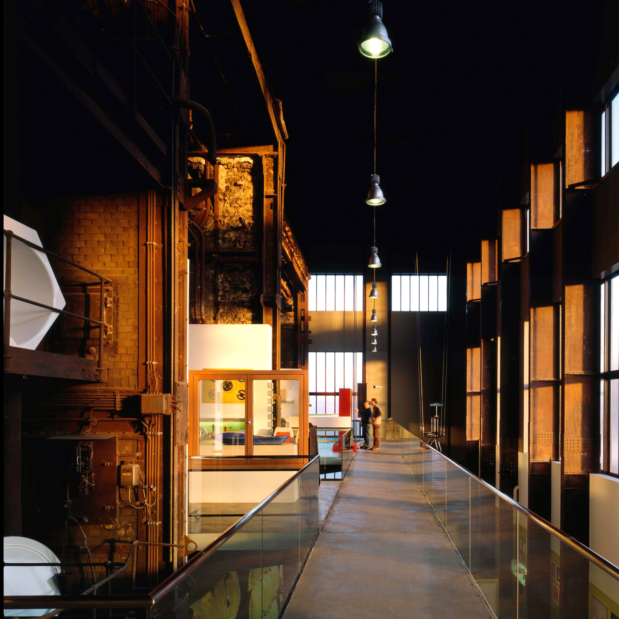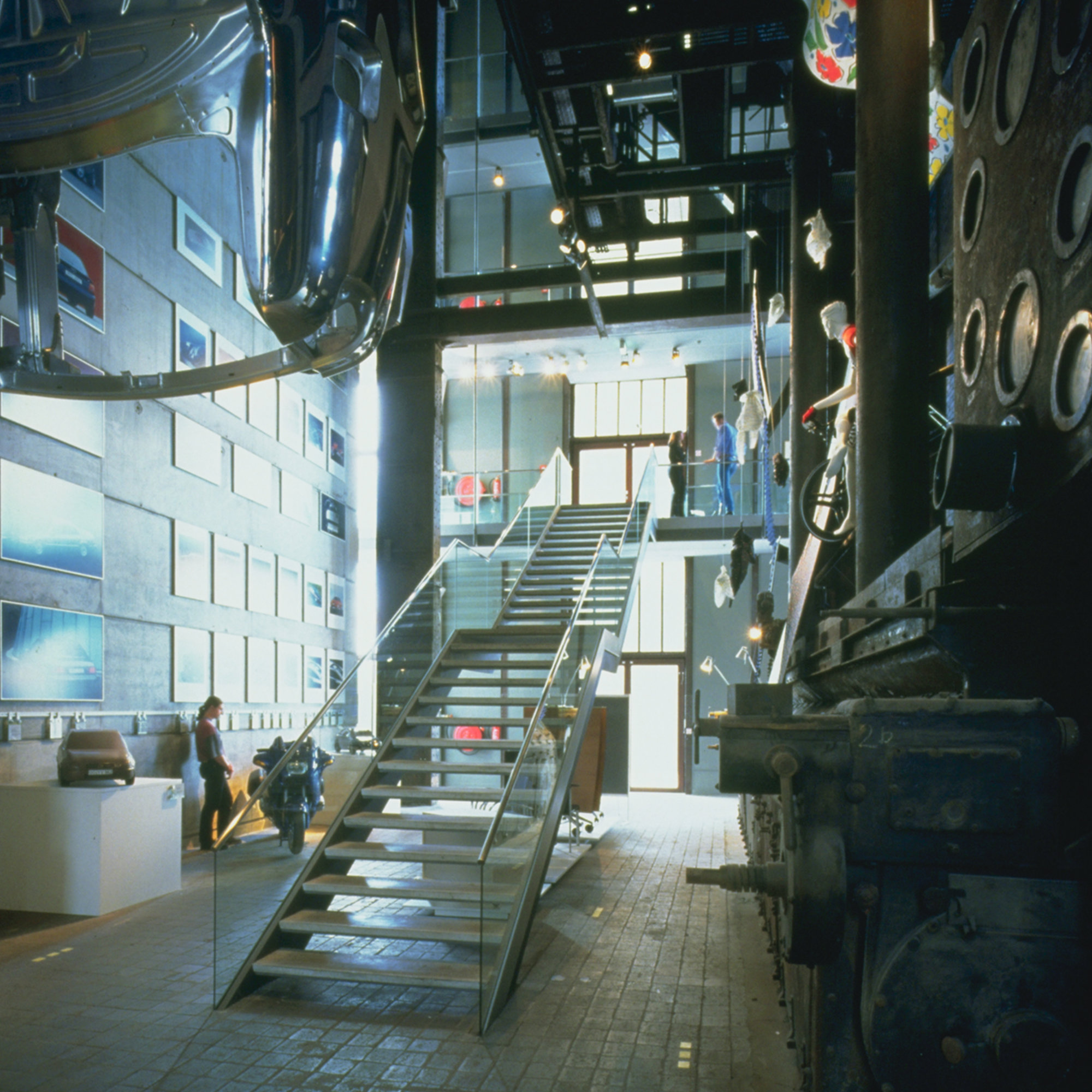 The first step was one of conservation, restoring the building’s facade and removing a number of later additions to reveal its original form. Inside, the heavy industrial feel of the building was maintained, with one of the five original boilers preserved as an example of 1930s technology. The remaining boilers were hollowed out to house independently supported galleries, which are articulated as ‘boxes within a box’, their lightness juxtaposed with the heaviness of the original fabric. A simple concrete cube contains conference rooms as well as further flexible exhibition spaces, able to be constantly updated in line with the shifting temporary and permanent collections. Visitors enter via the dramatic central hall where the rusty steel structure and exposed brick walls are constantly visible alongside the various displays - everything from cars to electrical appliances. The different exhibition areas and the interaction of old and new architectures create a varied backdrop for the location of exhibits, while the changing nature of the exhibitions themselves adds a further dynamic element to this relationship.