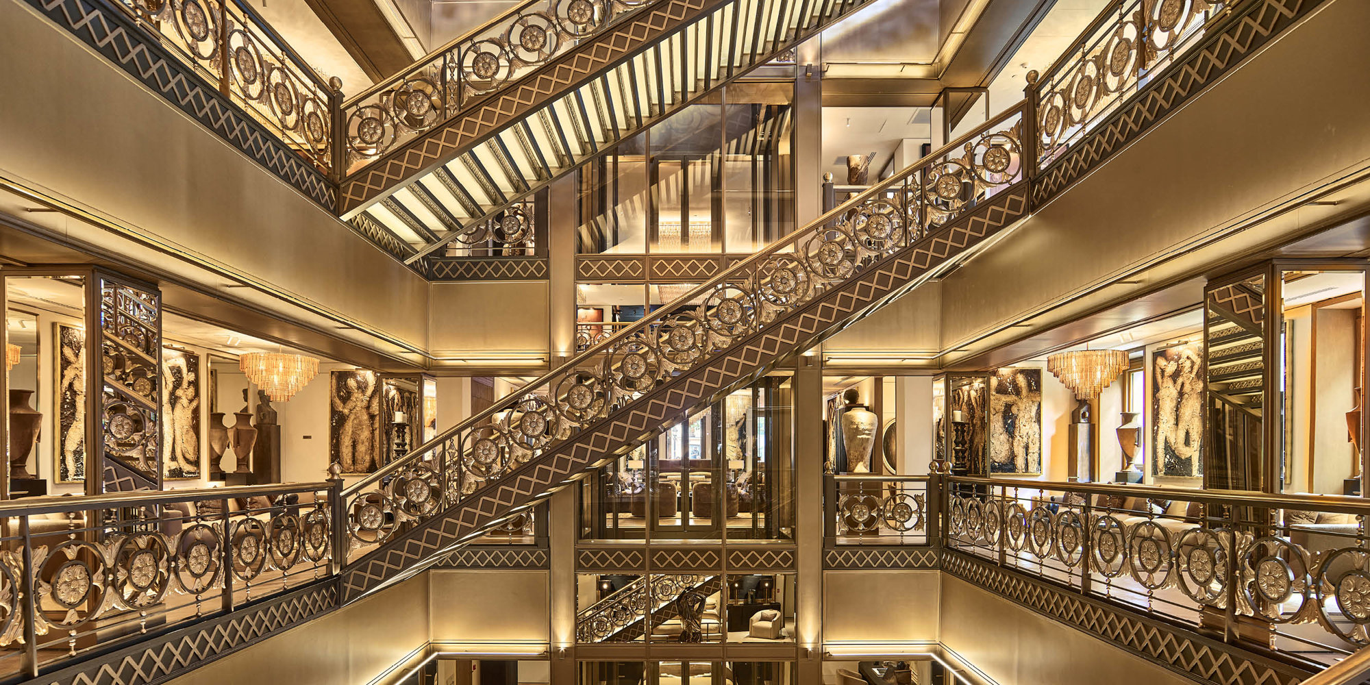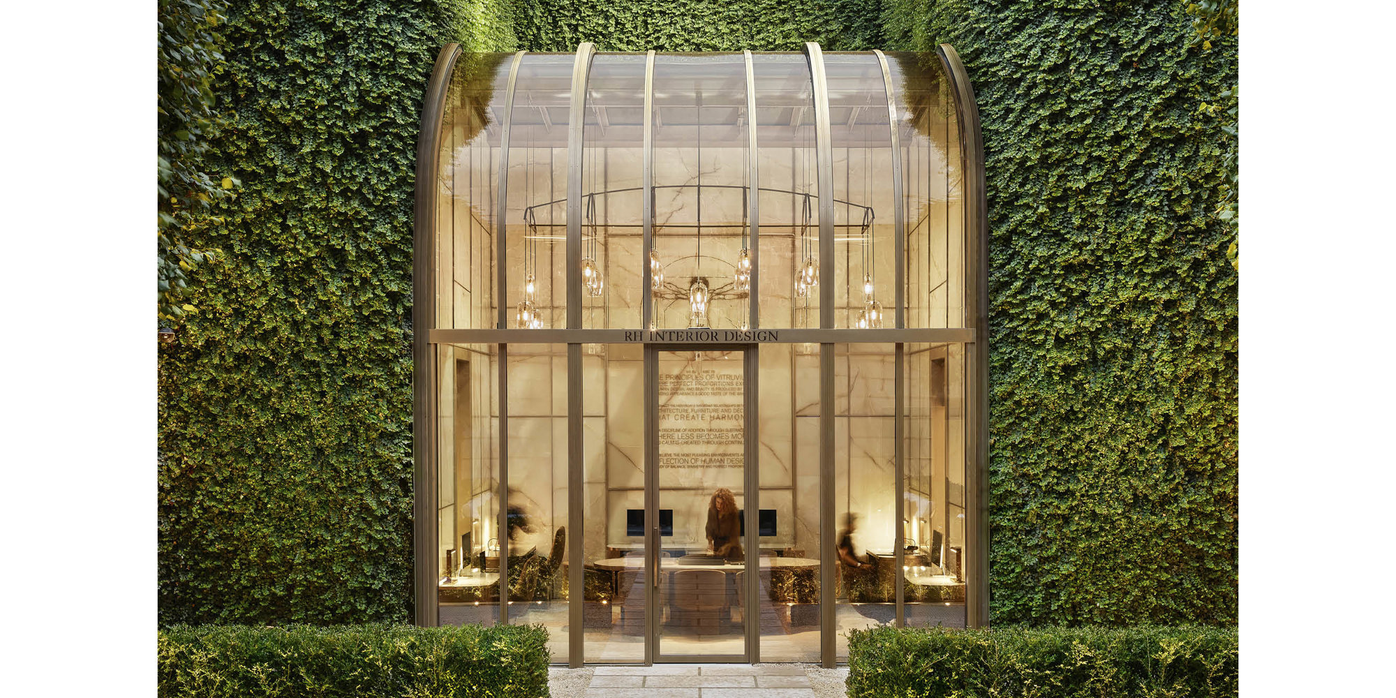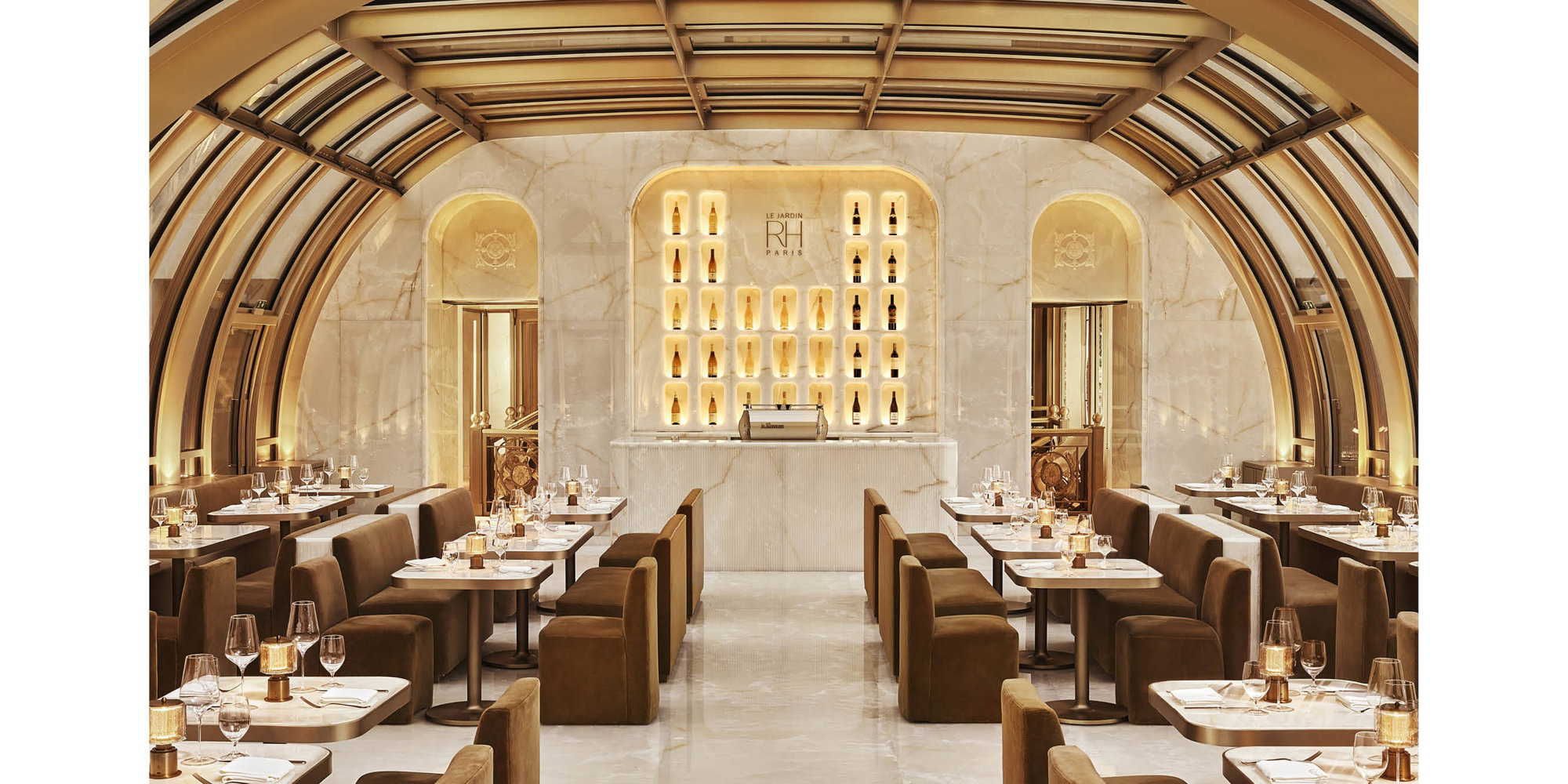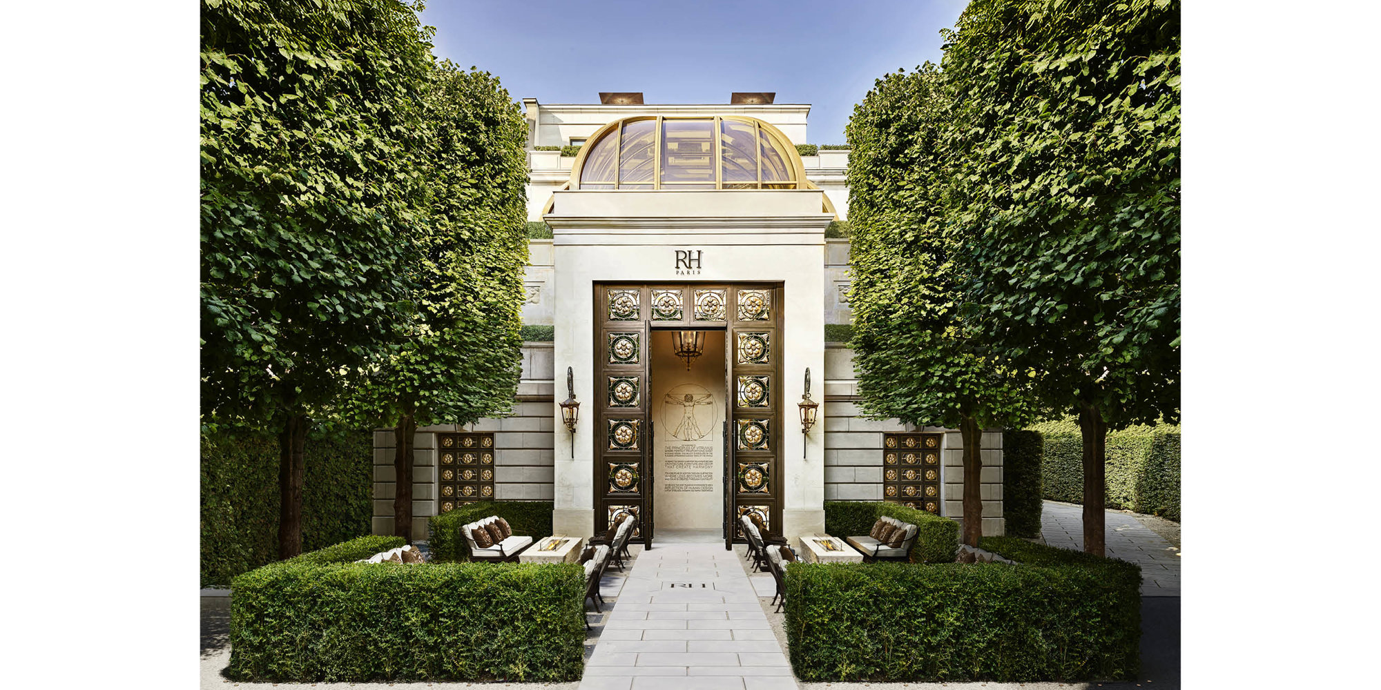The new gallery for RH – the leading luxury home furnishings purveyor – is located on the Avenue des Champs-Élysées, the historic thoroughfare that stretches between Place de la Concorde and the Arc de Triomphe. The retrofit project transforms the 1970s Parisian building into a hospitality-forward gallery space, with a winter garden restaurant, rooftop bar, and an adjacent design studio.