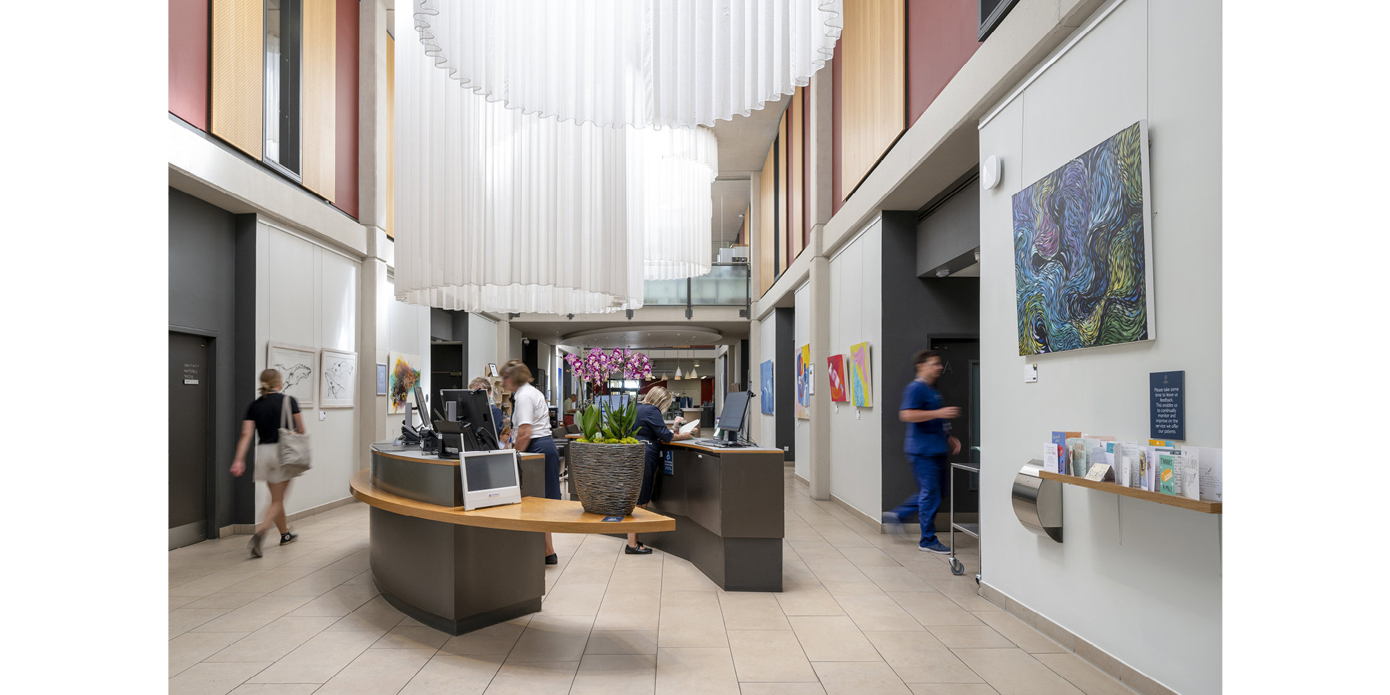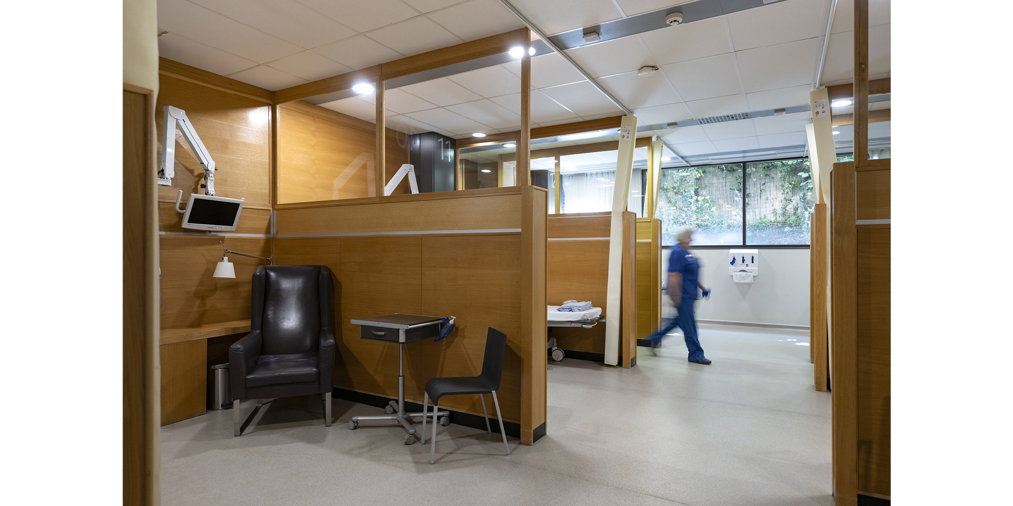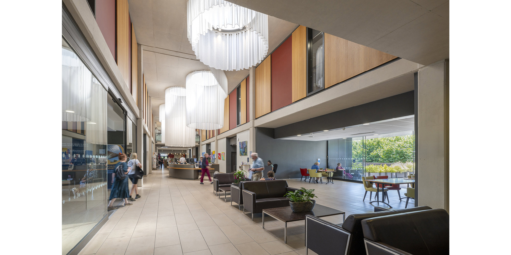 The ambition was to re-cast the hospital as a humane and civilised place for all those who use it. Everyone - whether a surgeon, nurse, or porter - is regarded as a 'partner' in the delivery of health care, with a common goal of promoting patient well-being. Sulis Hospital Bath provides operating theatres, bedrooms, consultation, treatment and recovery spaces, and offers both in-patient and out-patient care. With twenty-eight beds, it is relatively small in scale, which lends it an intimate atmosphere and thus avoids the sense of disorientation often experienced in larger hospitals. Divisions between departments are minimised to ease the stress involved in consultation and treatment for patients and reduce walking distances for staff. A double-height atrium, containing a café, nurses' station and reception point, provides a social focus for patients and staff alike.