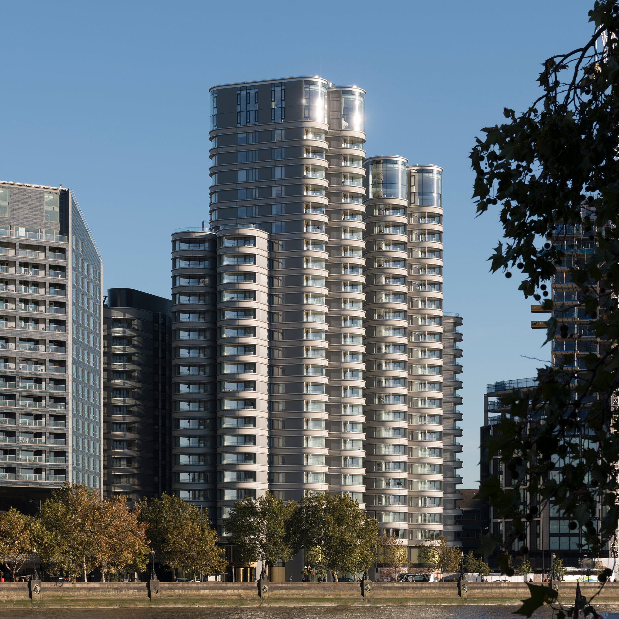 The Corniche is a mixed-use development of three landmark towers along the Albert Embankment on the south bank of the River Thames, opposite the Houses of Parliament. The buildings range from 15 to 27 storeys in height and provide 253 apartments, including affordable homes for senior living, along with offices, restaurants and a residents’ bar, gym, pool and spa. They contribute to the wider regeneration of the Nine Elms development zone, a 195-hectare development between LambethBridge and ChelseaBridge of 16,000 new homes, which represents the largest urban initiative of its kind in Europe.