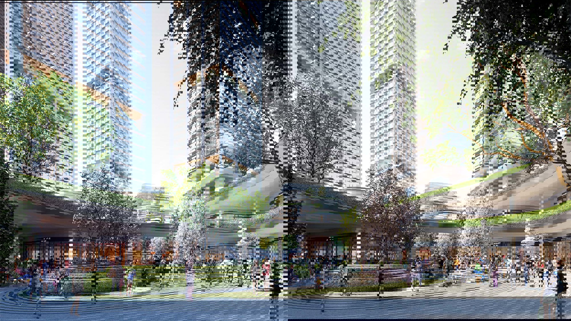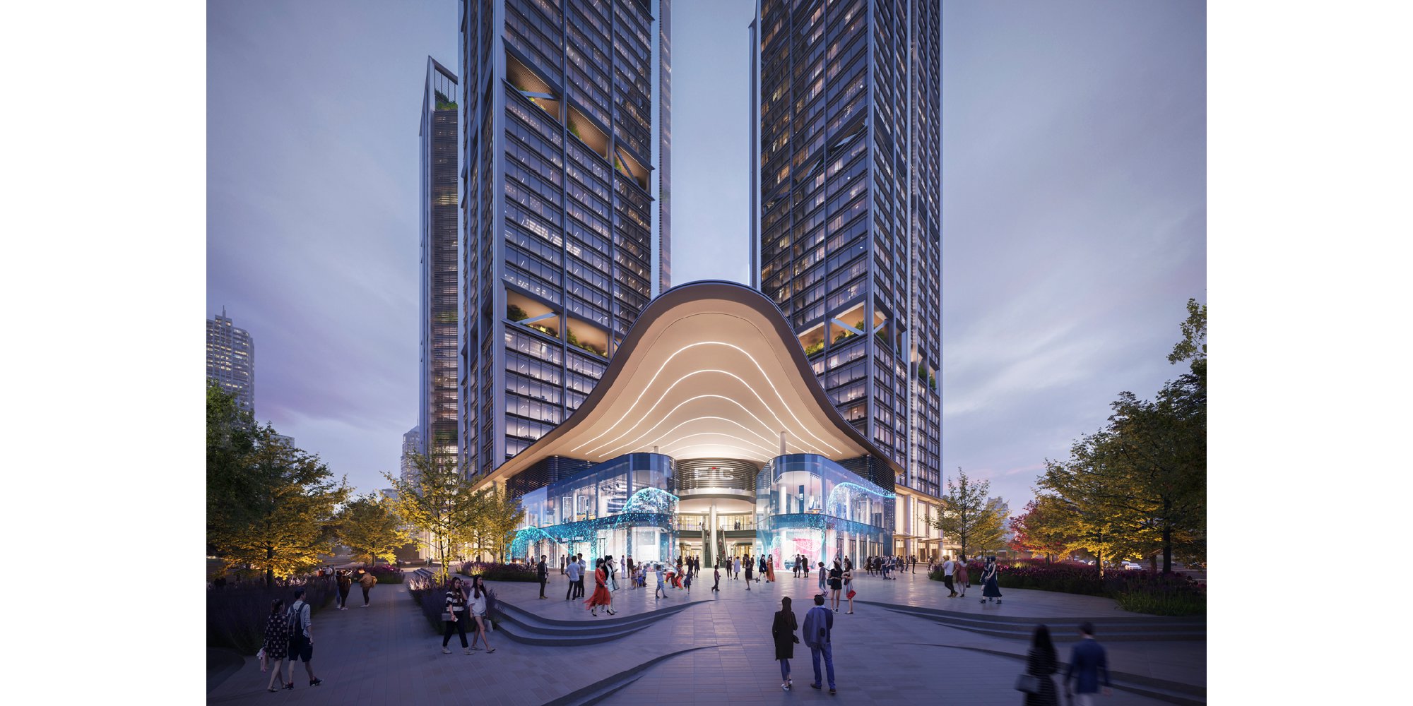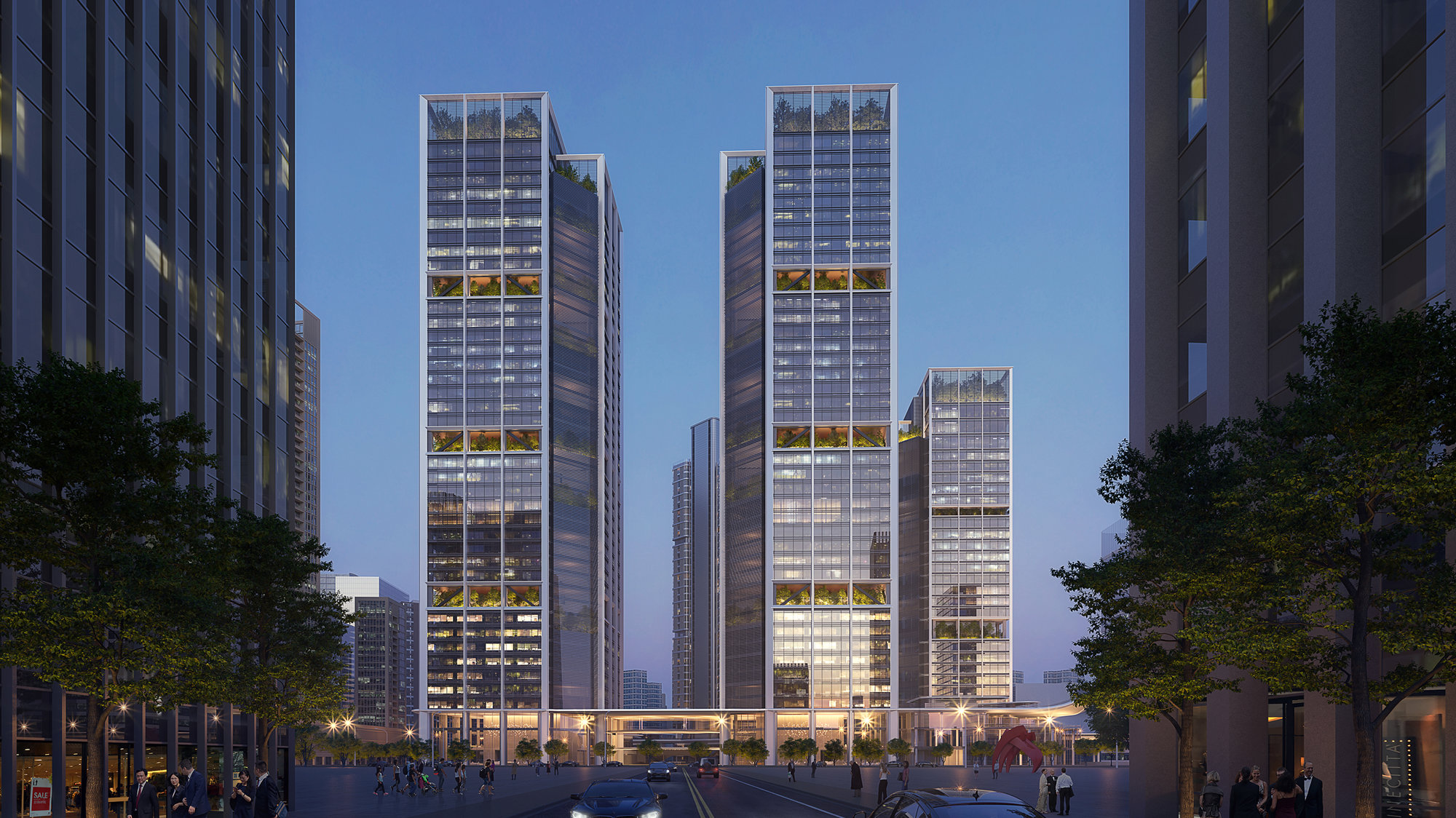The office towers attract international technology companies and deliver high-quality, flexible workspaces for government departments. A single lobby connects the bases of the towers, encouraging impromptu social interactions between workers. Within the towers, generous sky gardens and double-height green amenity areas provide a variety of pleasant breakout spaces.