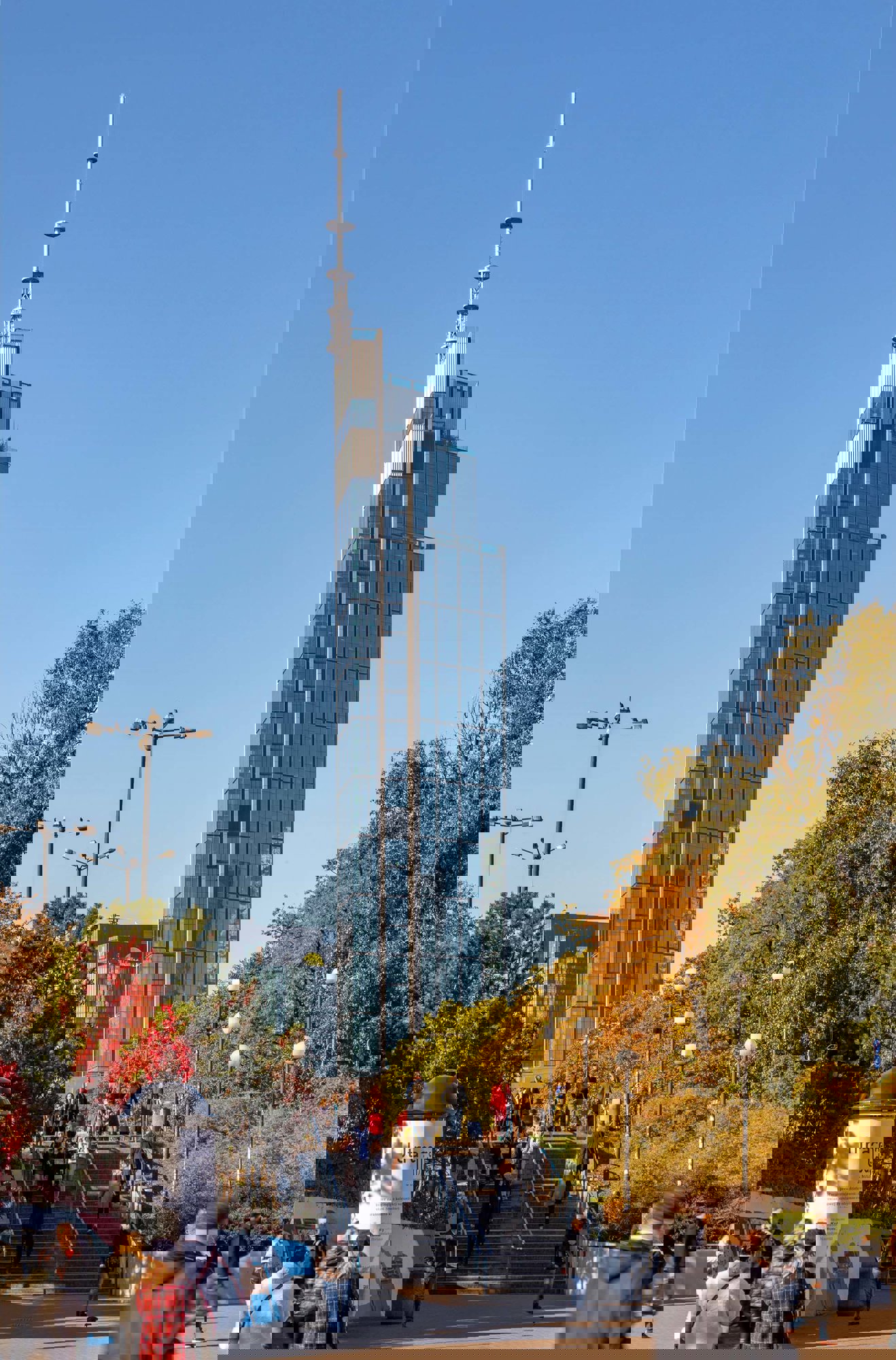 The public realm continues at the top of the tower, accessed directly from the ground via two panoramic lifts, with a viewing platform at level 53. This is the highest inhabited floor in Poland with uninterrupted views of the city. Level 49 will soon offer a fully landscaped terrace bar, with sixteen trees, breaking the record for Warsaw’s highest garden.