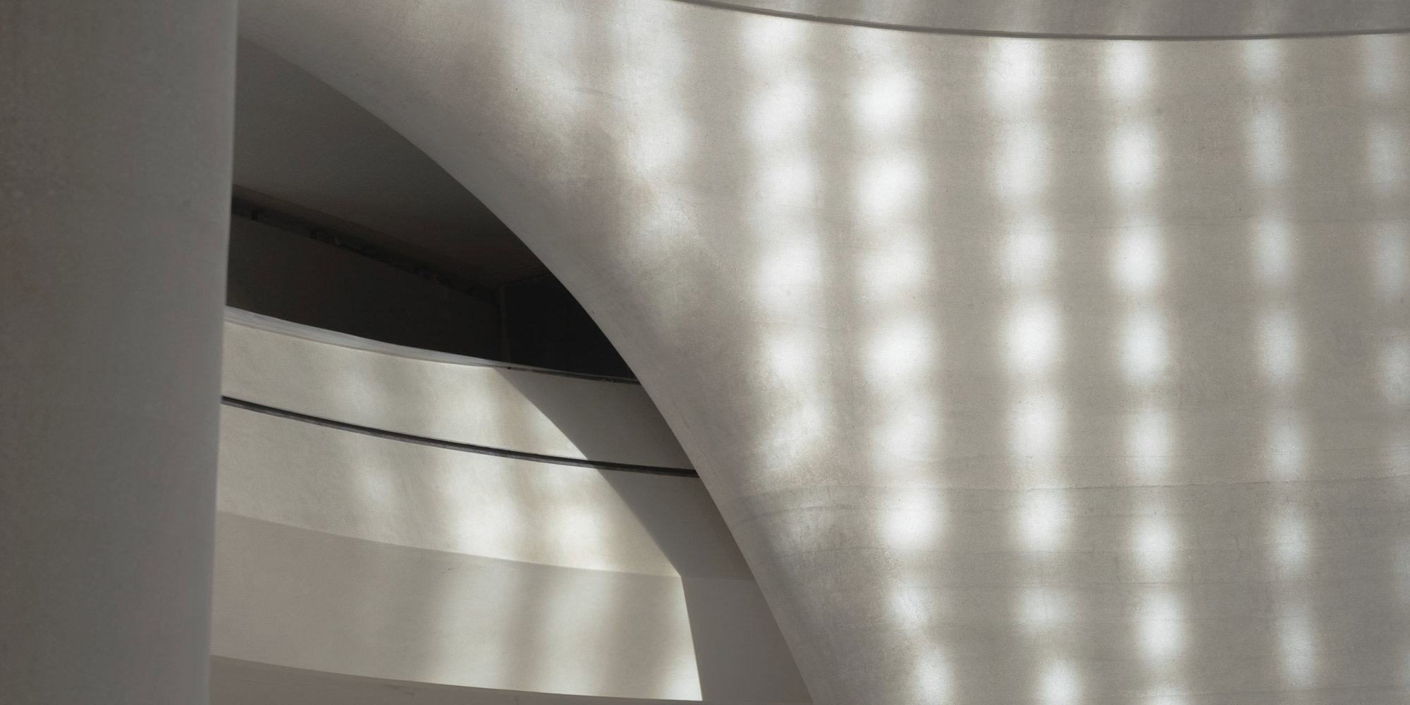 The museum spaces are located within a mound, which has textured faceted panels that are an abstraction of the topography of Jebel Hafeet. The mound insulates the interior spaces from solar gain, forming a protective shield that prevents heat from entering the building. When visitors step inside the museum, the Al Liwan lobby and its light-filled atrium serve as both a meeting and orientation space, hosting performances such as traditional dance and poetry throughout the day.